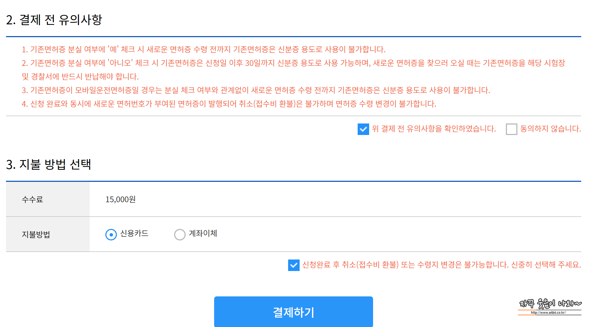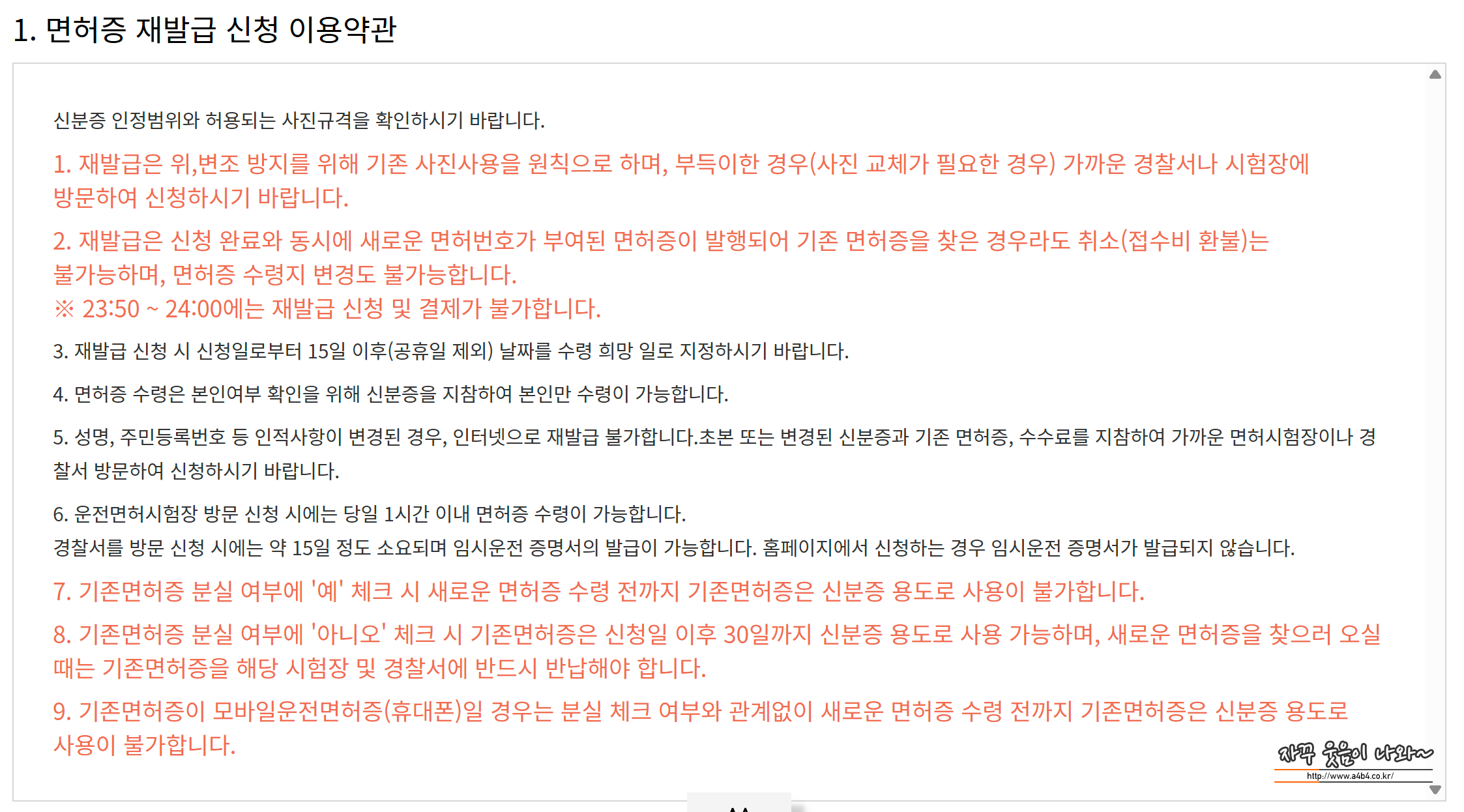2. 재발급 신청이 완료되면, 분실한 면허증을 찾아도 환불 및 철회 불가