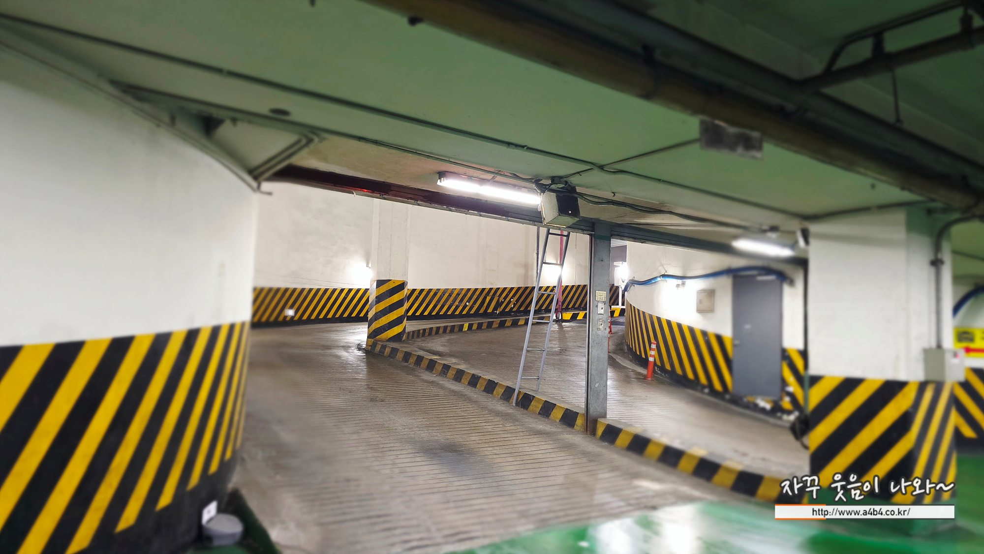 먼저 주차장 곳곳에 사고나기 좋은 기둥들과 커브 공간이 있네요. 또한 주차장이 서늘하고 어둠침침 한데요. 띡 영화나 드라마에서 마약거래나 살인사건 나는 그럼 음침한 공간이 생각나는 곳입니다.