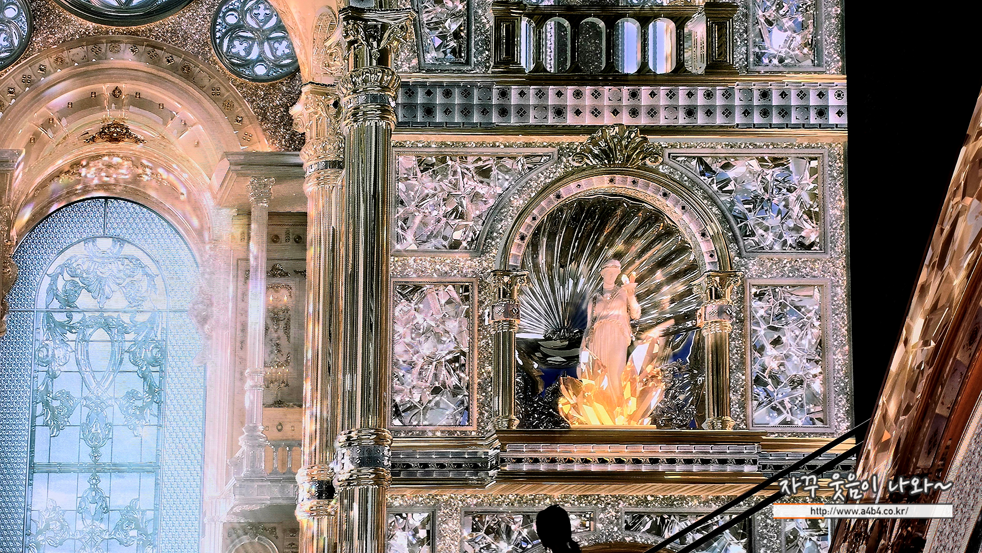 실 존재하는 성당인지? 아니면 유명한 건축물인지 모르겠는데, 양쪽 벽면과 에스컬레이터 중앙에 거대한 영상이 상영되는데, 에스컬레이터를 타고 올라가고 내려가면서 보는 재미도 있다.