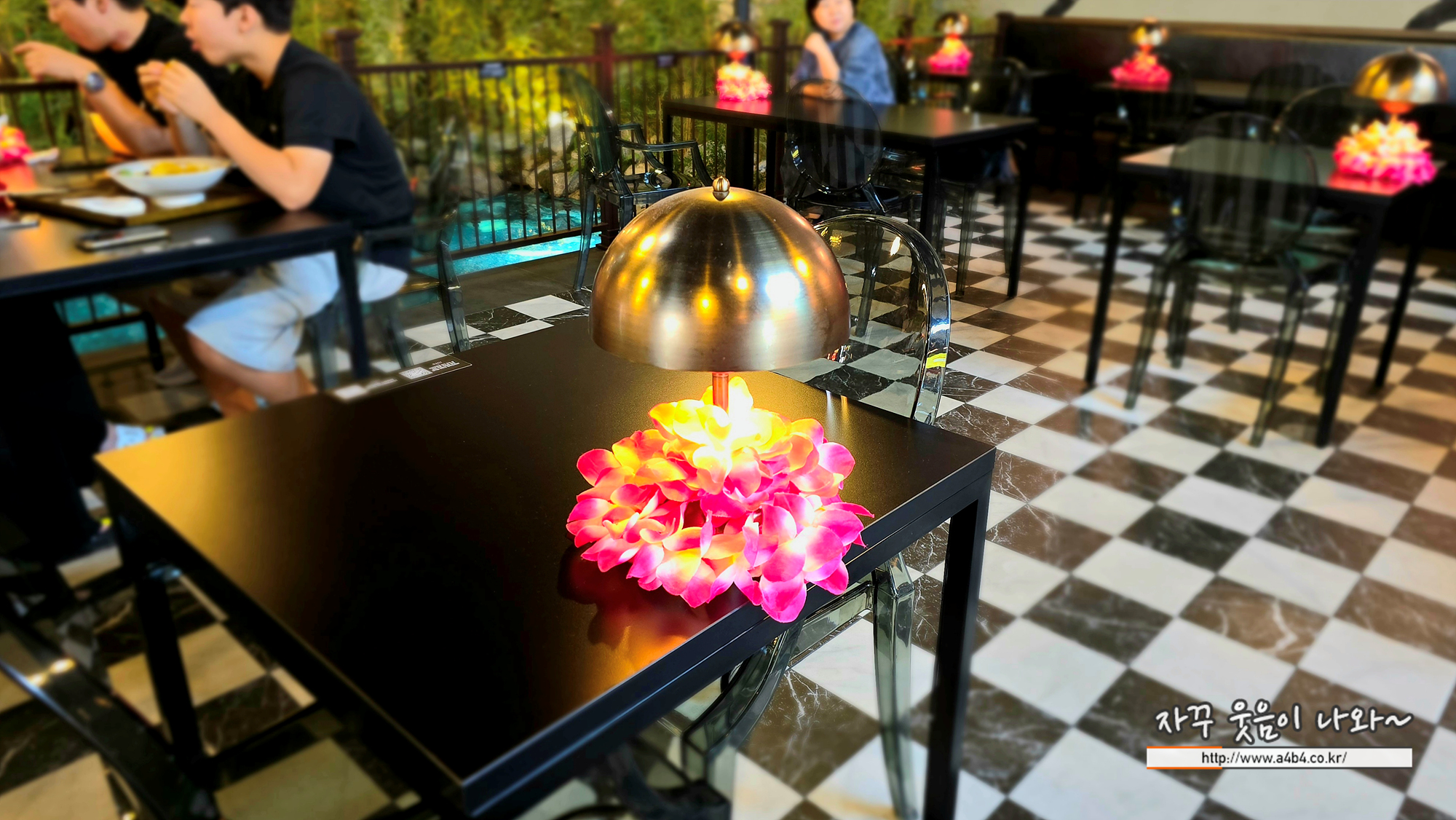 인스파이어 오아시스 고메빌리지에는 피자와 파스타, 하와이안 음식, 타코등도 만나볼 수 있는데요. 테이블도 이런 분위기로 세팅되어 있습니다. 오히려 이곳이 더 푸드코트에서 매력적인 메뉴로 보입니다.