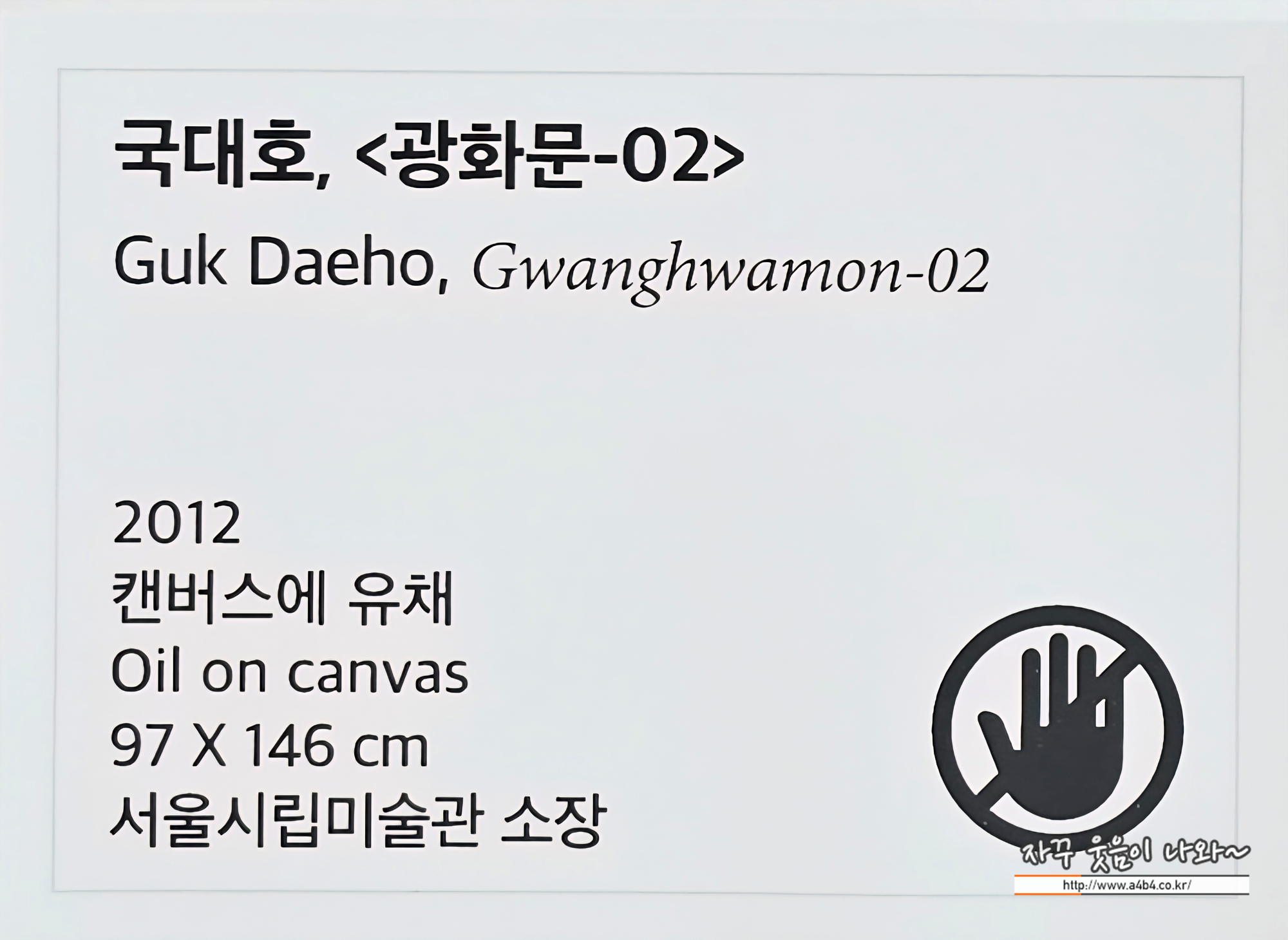 광화문 앞 세종로 거리의 반짝이는 풍경. 국대호 작가의 작품은 얼핏 초점이 나간 사진 같지만, 사실은 유채 물감으로 정교하게 그린 회화입니다. 그는 현실을 그대로 옮기기보다 사실성을 주관적으로 조절해 촬영하고, 이를 캔버스에 옮겨 사진과 회화를 결합합니다. 흐릿한 아웃포커싱 풍경은 관람객이 자신의 기억과 시각을 개입시켜 감상하게 하며, 마음속 광화문의 모습이 겹쳐져 점차 선명해집니다.