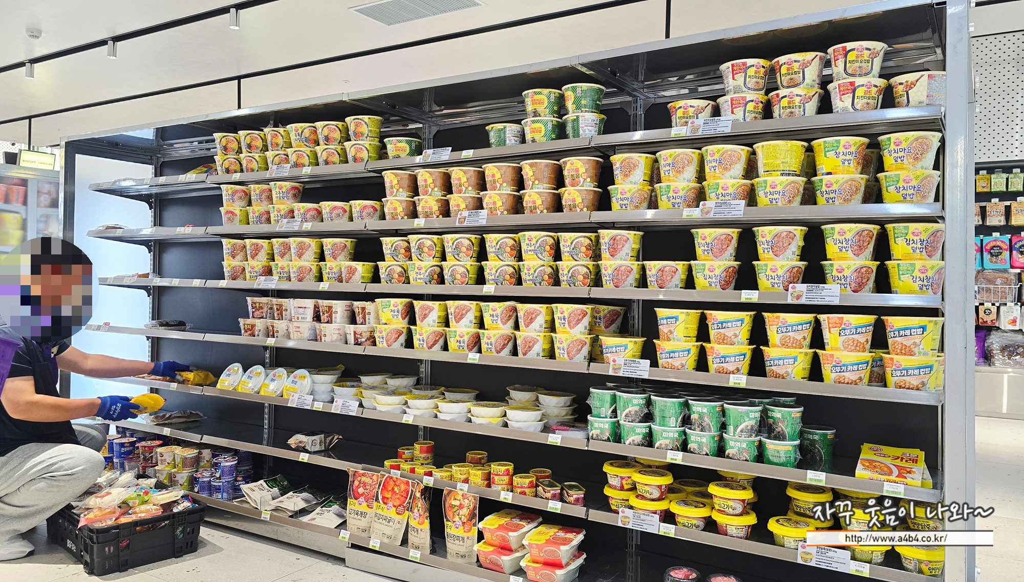 컵밥이나 햇반, 죽, 컵라면 등 즉석식품과 핫바, 삼각김밥 등 편의점 음식들도 다양하게 마련되어 있네요.