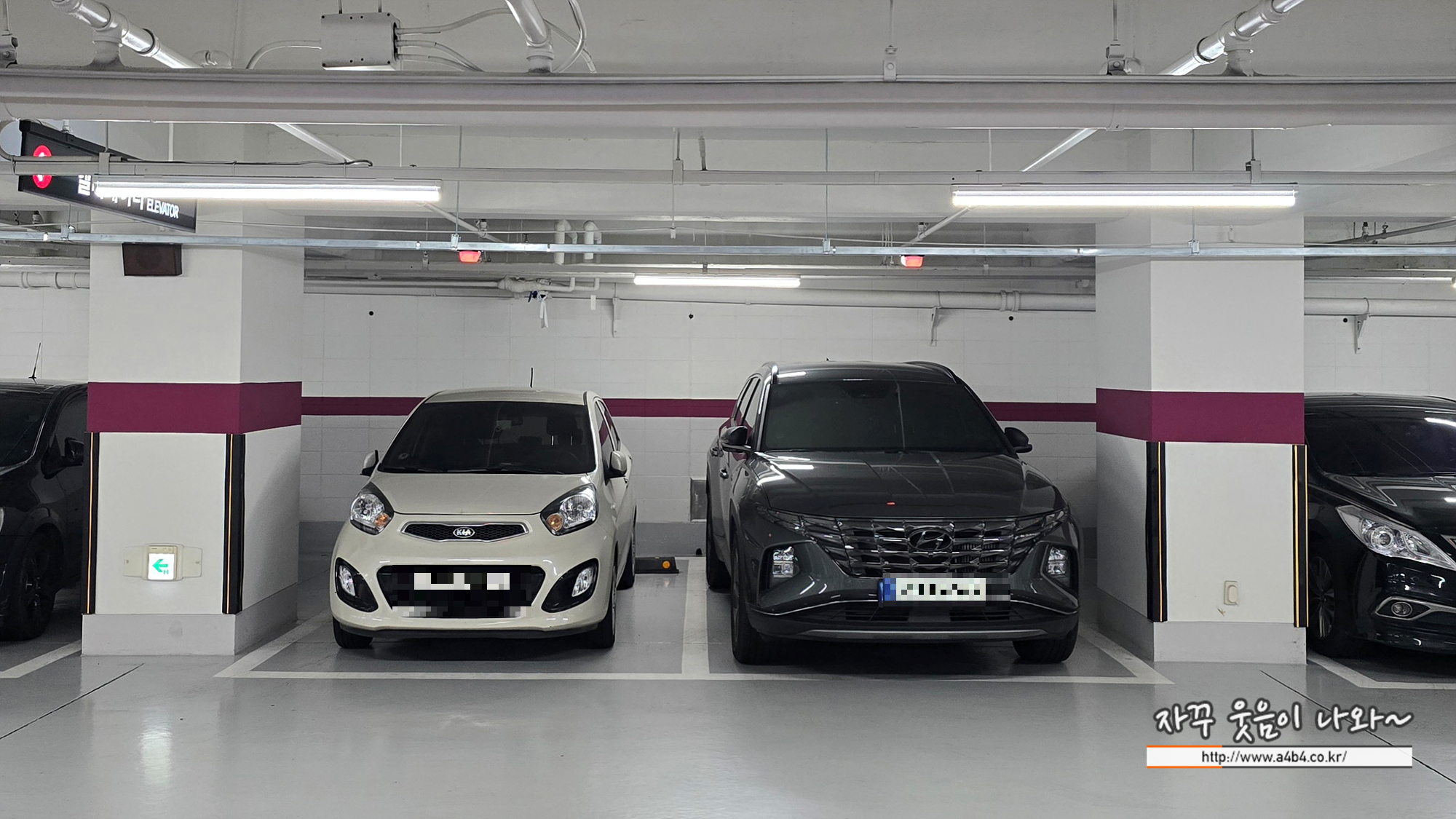 주차장도 깔끔하게 잘 관리되고 있고요. 주차장 간격도 여유 있어서 중대형 차량 주차에도 큰 어려움 없습니다. 주차장에서도 엘리베이터 이용해서 잠실 정형외과 이동도 큰 어려움 없습니다.