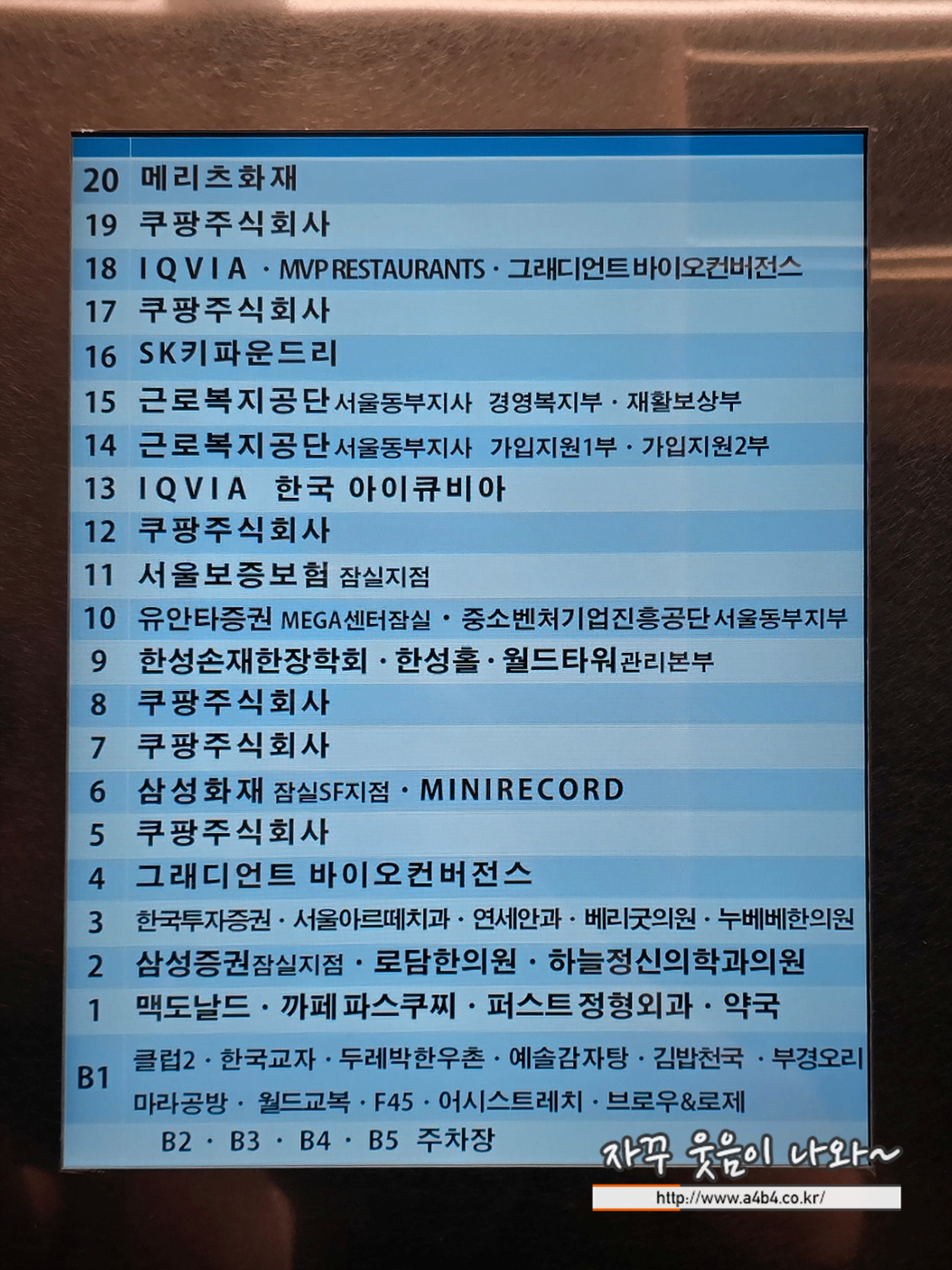 주차장 굴곡과 폭은 일반적인 수준으로 초보운전자만 아니라면 잠실퍼스트정형외과의원 위치한 월드타워 주차장 주차에 큰 어려움 없어 보입니다.