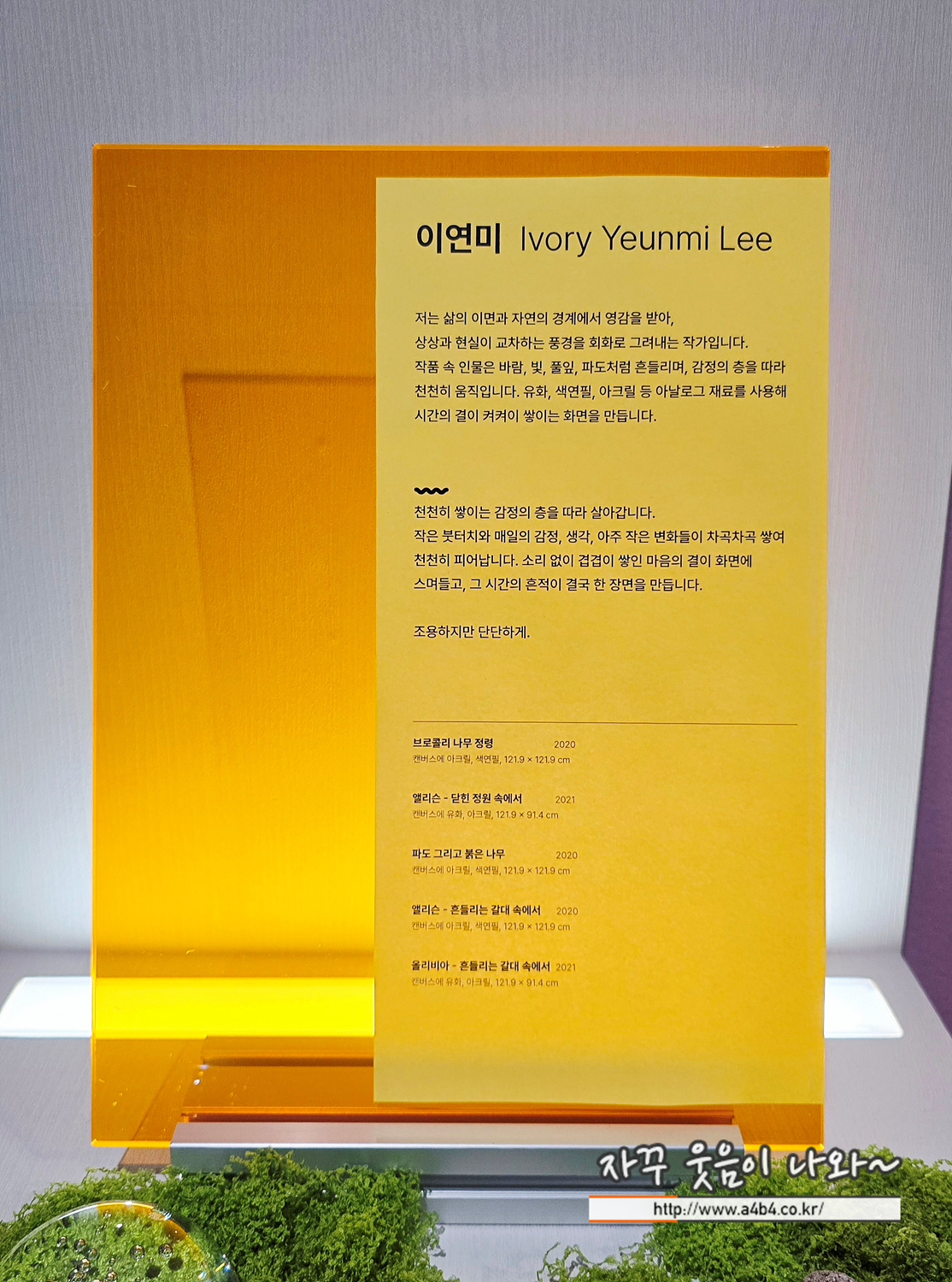 그리고 국내에서 이목하 작가의 전시회만 기다리다가, 이목하 개인전은 아니어도, 이번 석파정 미술관 이끼 전시회 통해 작품을 만나볼 수 있었다는...