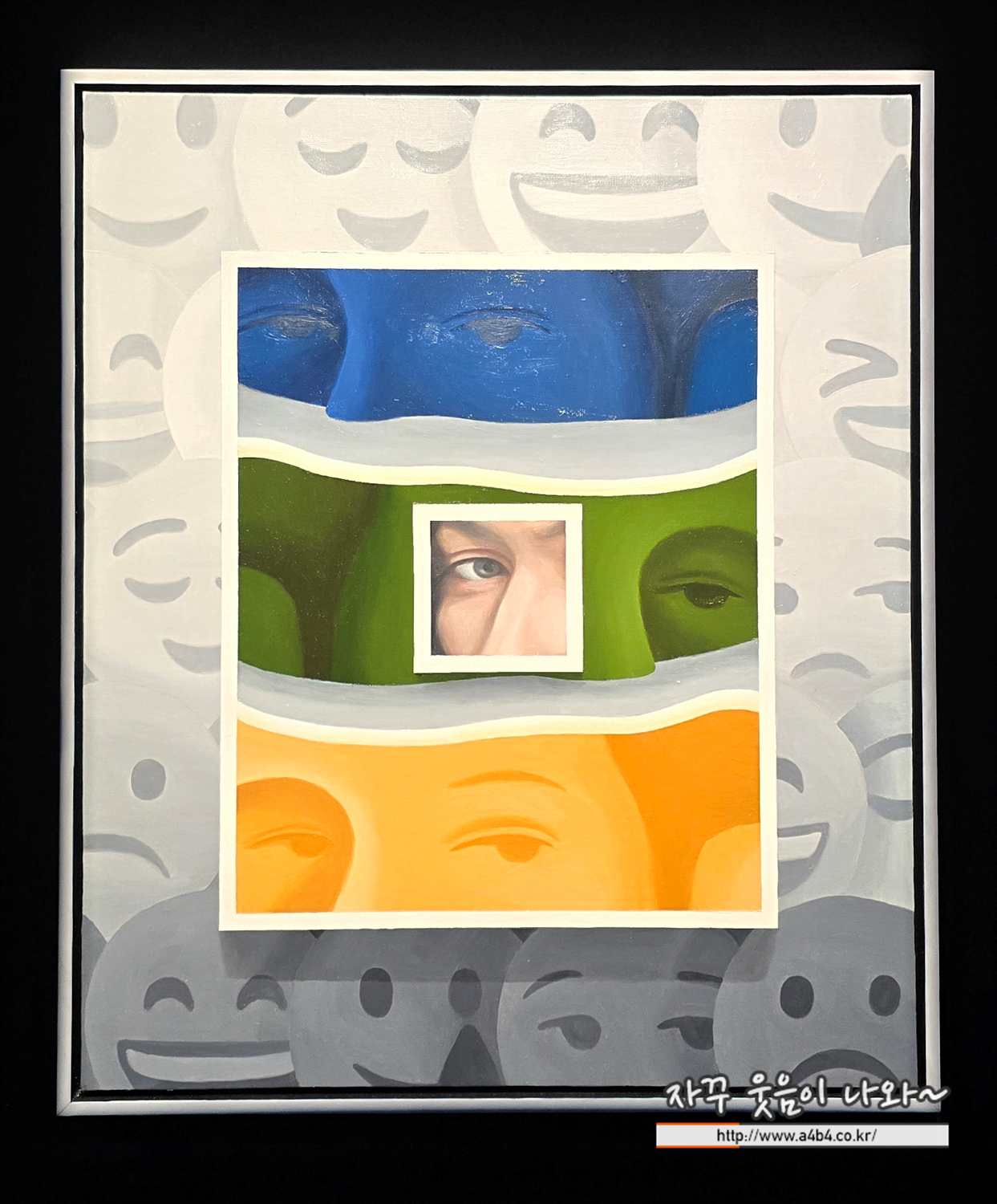 현대 사회를 살아가는 인간의 내면 심리를 회화로 그려냅니다. 매순간 급변하는 현대 사회와는 대조적으로 인간의 내면은 점차 단순해지고 있다고 생각한 작가는 오늘날 인간의 감정 표현에 주목하여 감정의 깊이를 단순하고 간결하게 전달할 수 있는 이모지를 동시대의 모습을 반영하는 도상으로 사용합니다.
