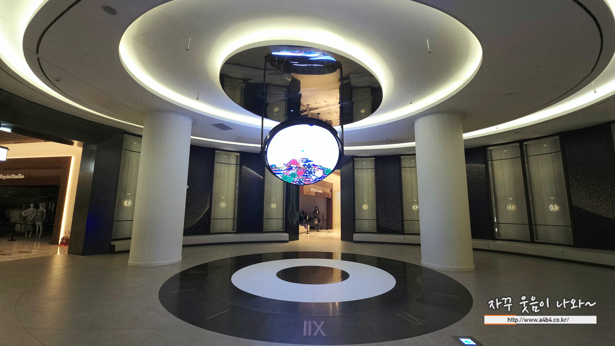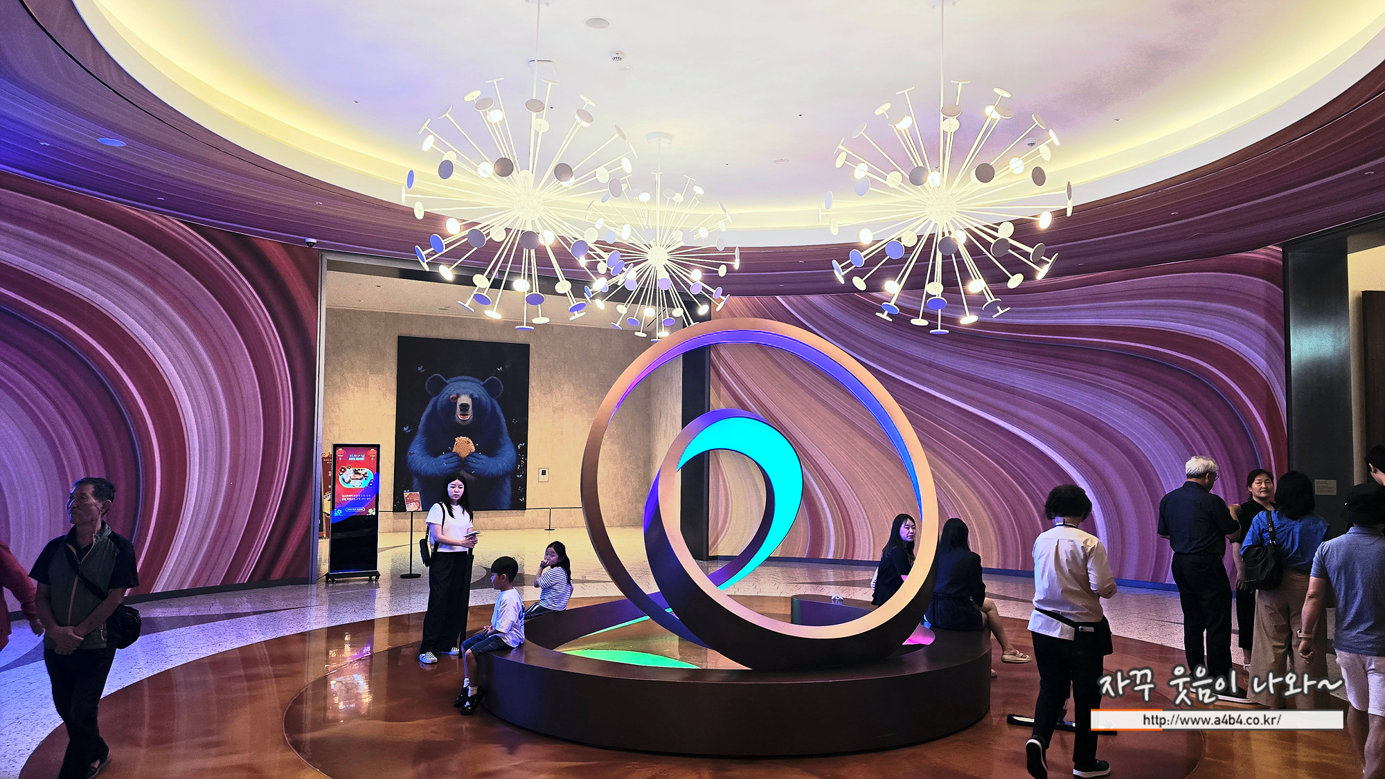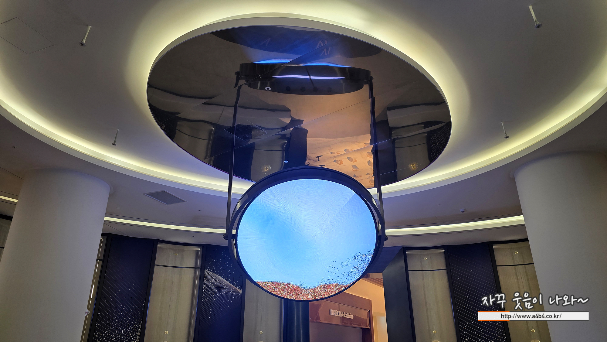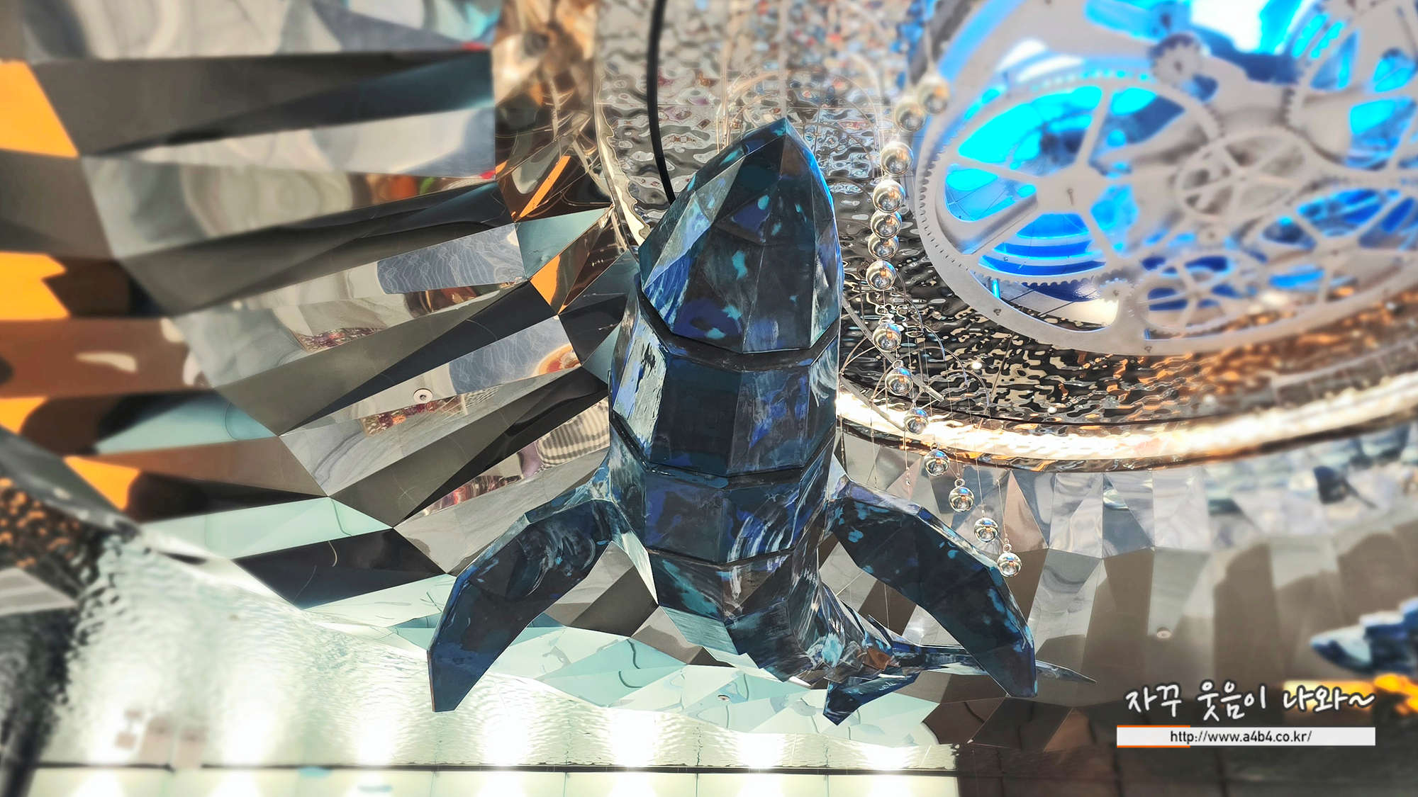 홀 상단에는 고래가 유영하고 다니는 볼거리와 상당히 매카닉한 조형물은 만나볼 수 있는데요.