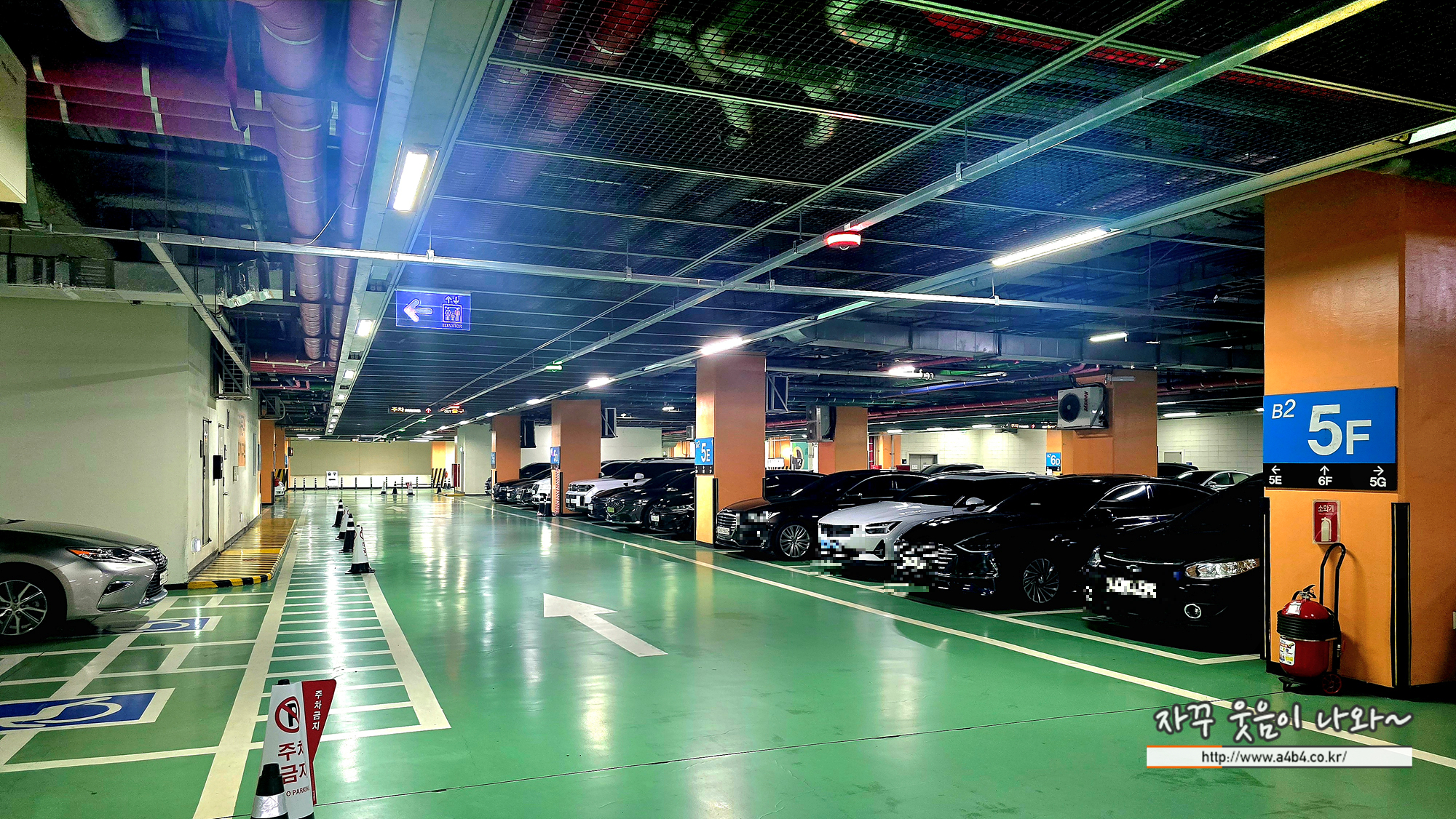 주차장은 지하 2층에 있습니다. 지하 1층 주차 공간은 일반 주차장은 아니네요. 행사 차량이나 임원분들 주차장이 아닐까...