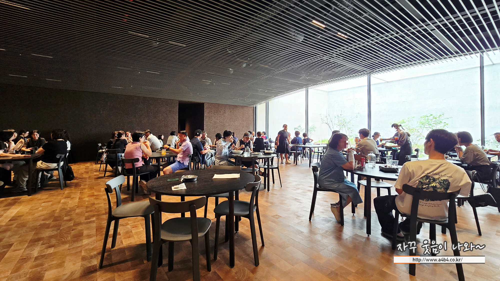 다소 어두운 분위기의 입구와 많은 사람들 9월 초 까지도 날씨가 덥다 보니, 호암미술관 야외관람보다는 이곳 호암카페에 모두 모여있는 것 같습니다.
