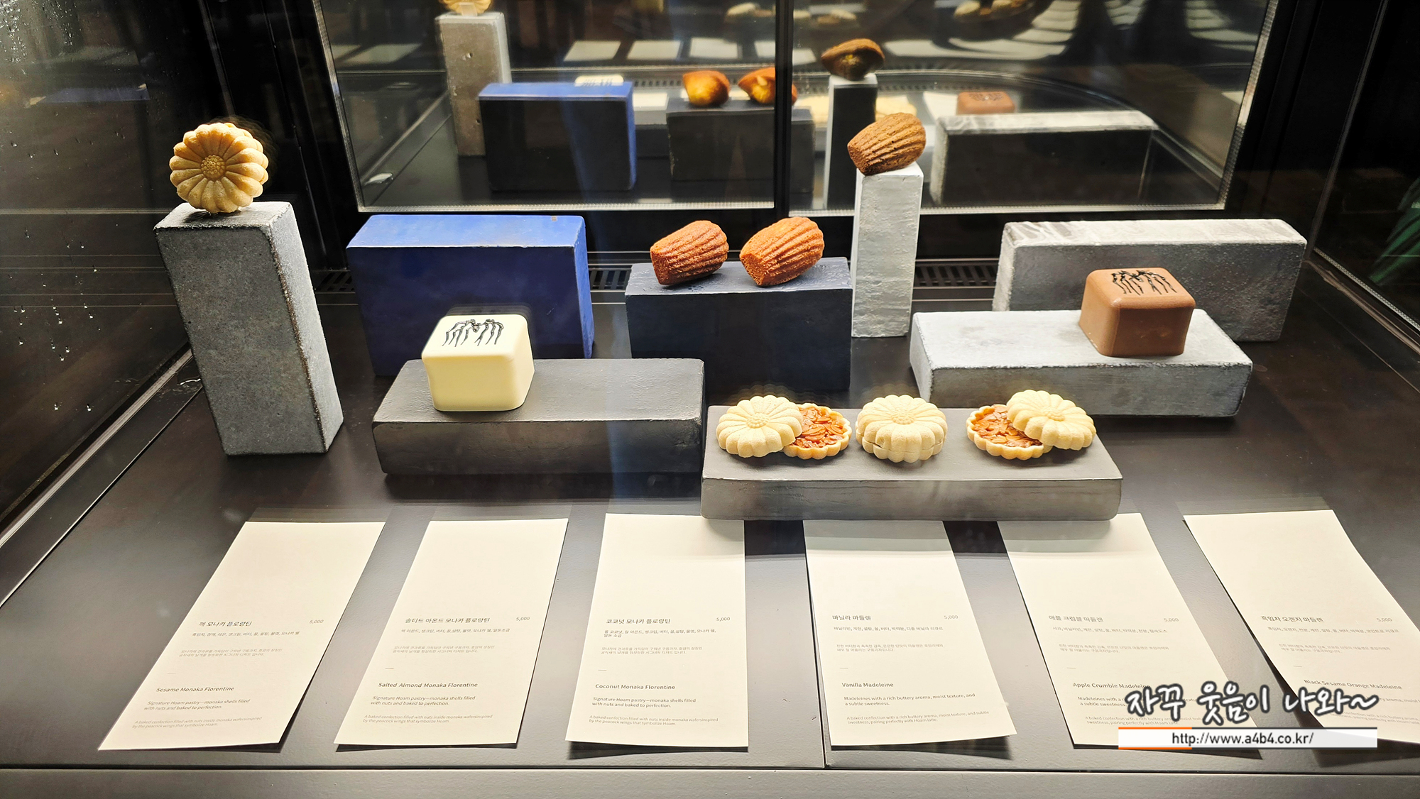 아래 마들랜이나 모나카 가격은 5,000원, 지금 전시회가 열리고 있는 루이즈 브루즈아 대표작 마망 케이크 가격은 18,000원 입니다.