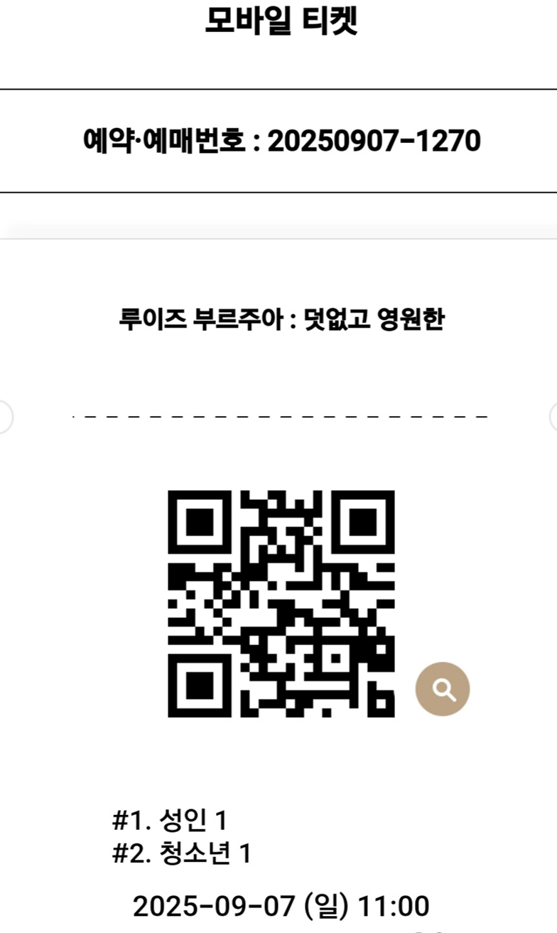 저는 차량으로 방문 했는데요. 미술관 입구에서 모바일 티켓의 QR 확인하고 미술관으로 들어 왔는데요. 실물 티켓이 필요하시면 현장발권 또는 모바일 예약 취소 후 현장발권 하시면 됩니다.