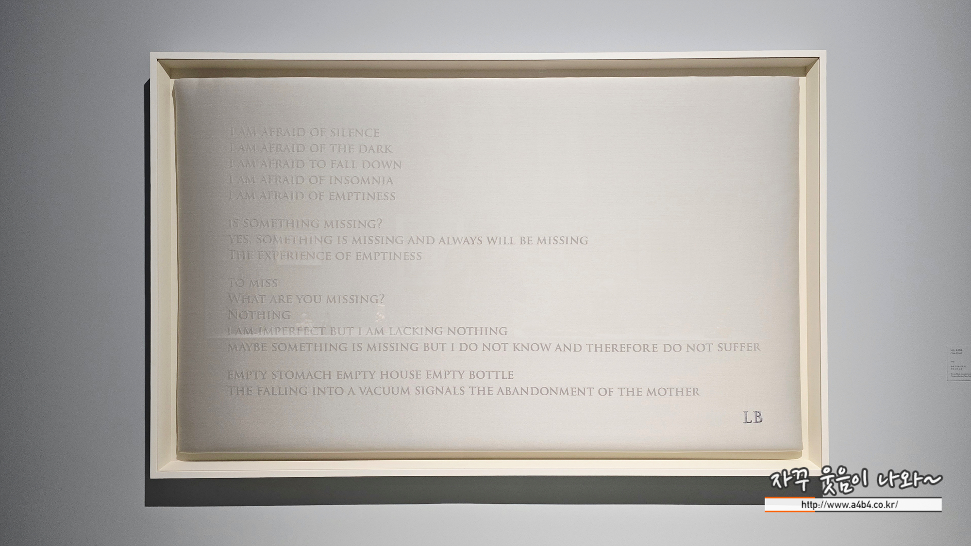 호암미술관 전시회 '루이즈 부르주아 : 덧없고 영원한' 제 1전시실 마지막 공간입니다.