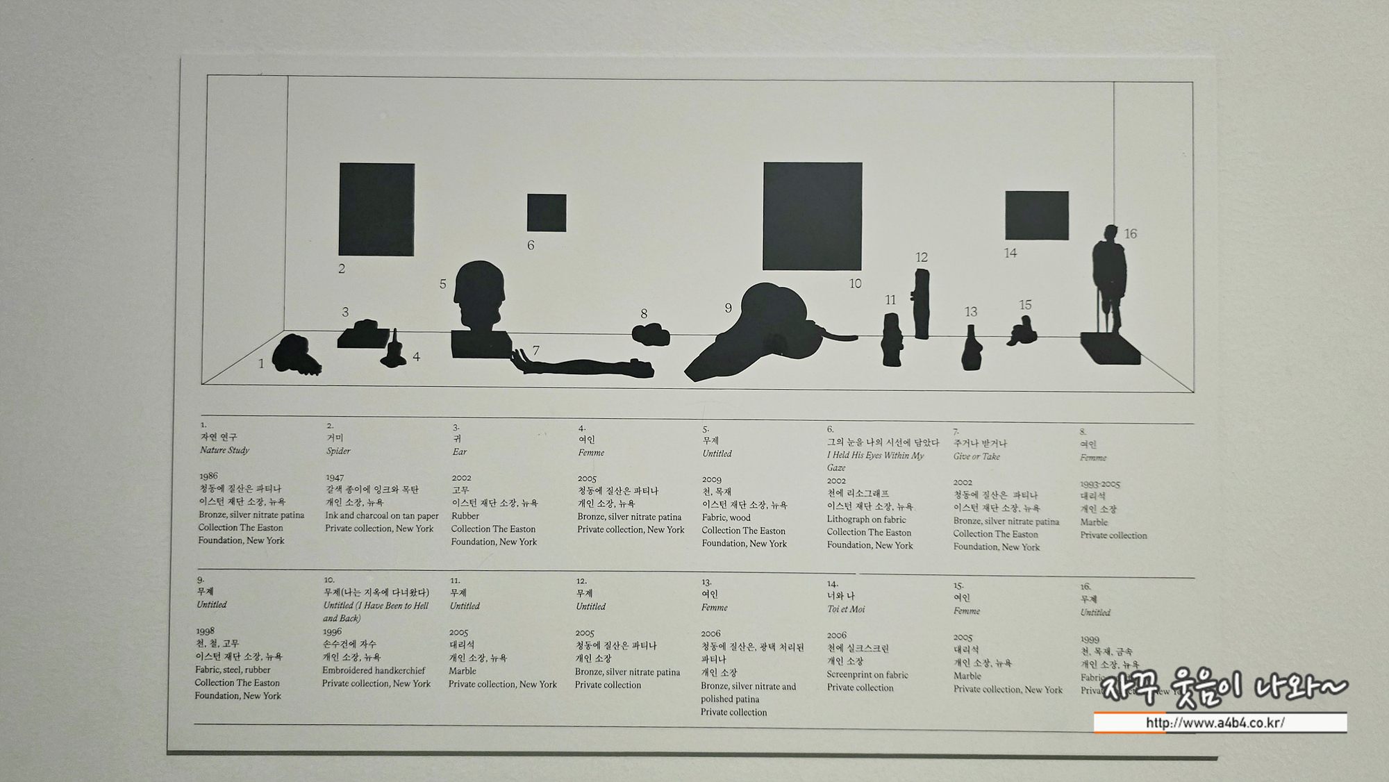 여기까지 호암미술관에서 열리고 있는 호암미술관 루이즈 부르주아 : 덧없고 영원한 전시회 소개입니다.