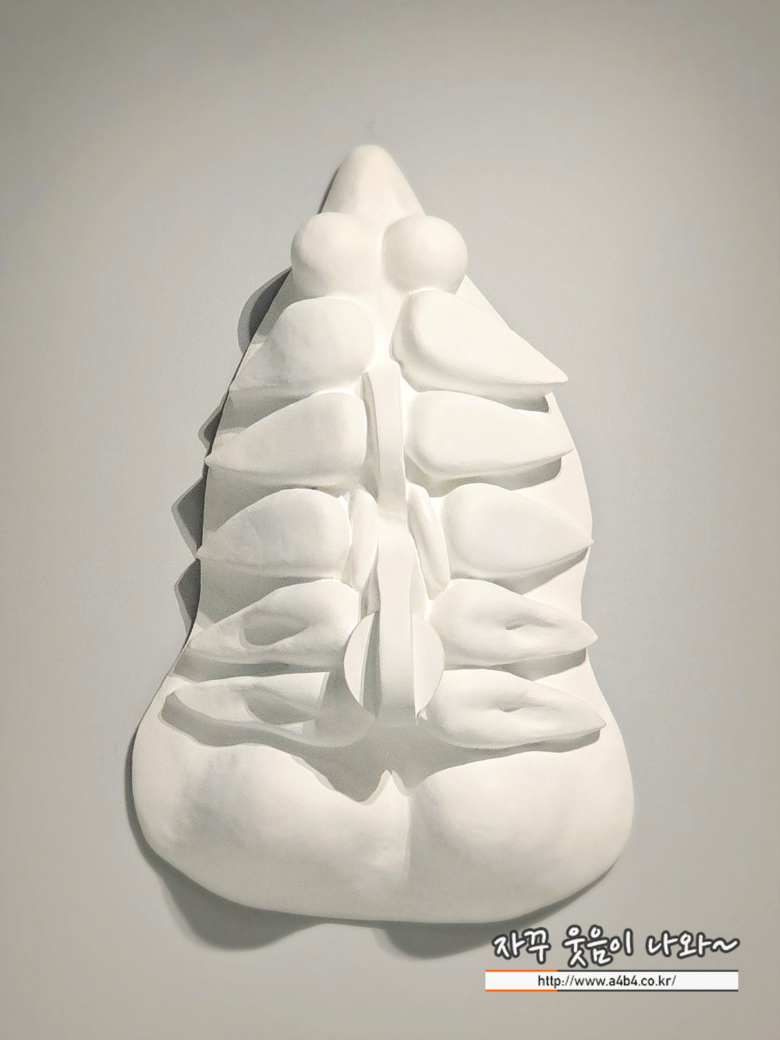 이 조각은 청동을 흰색으로 칠한 것으로, 인간의 몸을 대칭적인 형태로 압축시킨 형태를 띠고 있습니다. 꼭대기의 둥근 형태는 가슴을, 맨 밑의 덩어리는 엉덩이를 떠올리게 합니다. 가슴과 엉덩이 사이는 척추와 갈비뼈 같기도 하고 꽃대 같기도 한 형태로 이루어져 있습니다. 마치 식물과 인체가 결합된 듯한 이 형상은 인간의 몸통을 자아의 본질, 곧 숨과 생명, 힘을 담고 있는 구조로 보았던 브루주아의 생각을 반영합니다.