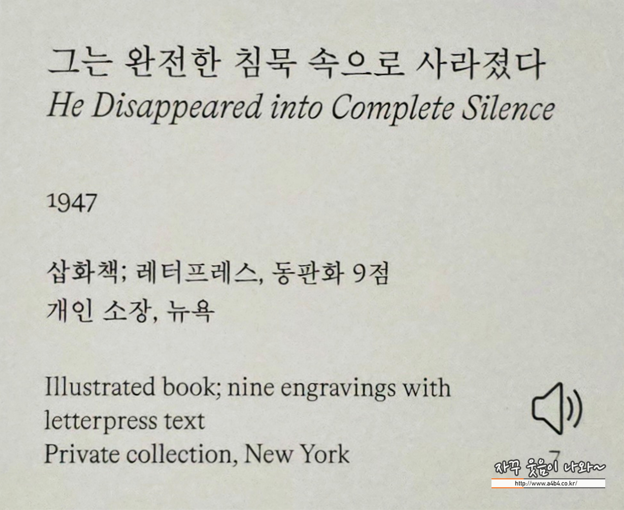 그는 완전한 침묵 속으로 사라졌다, He Disappeared into Complete Silence. 1947