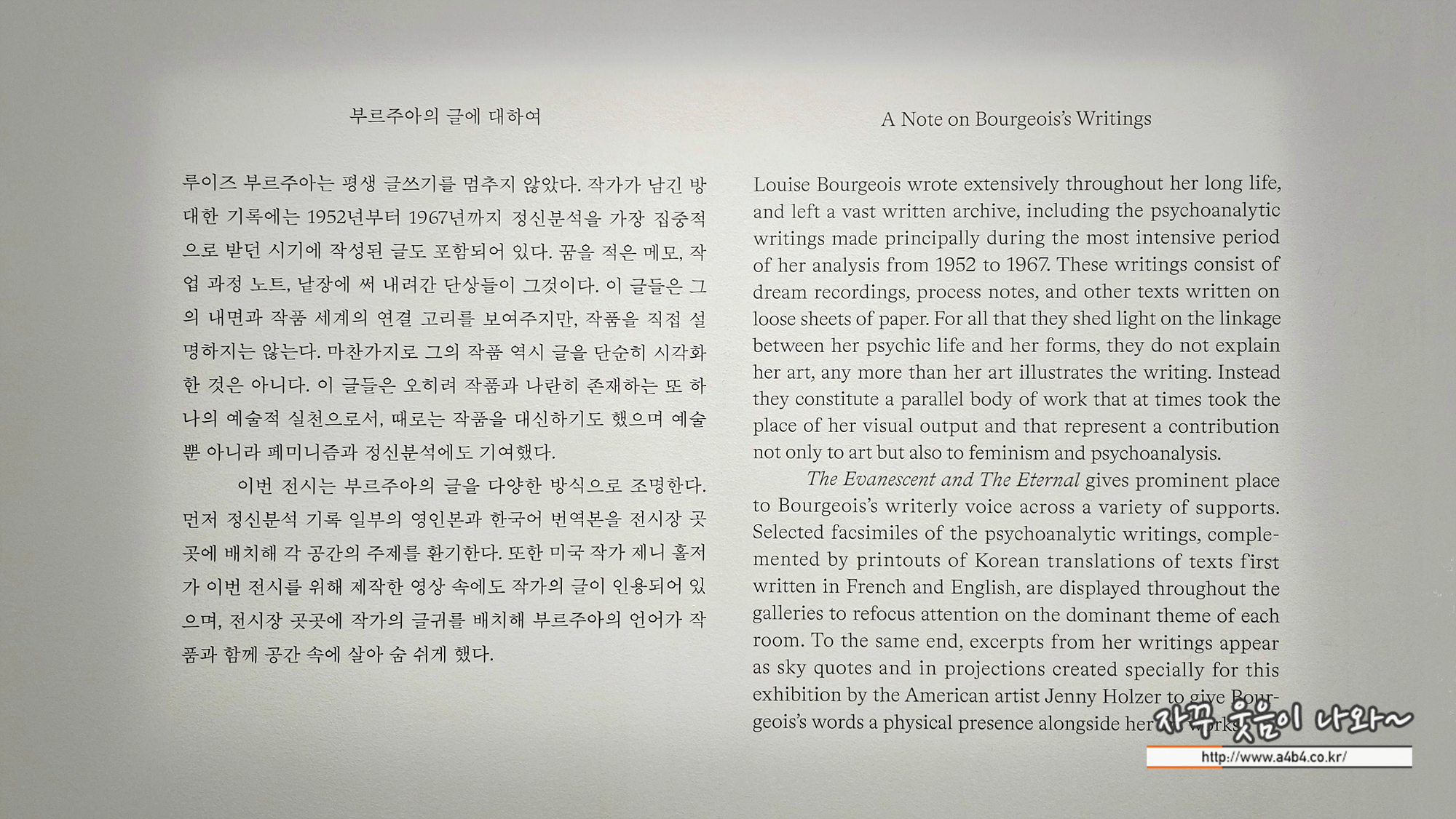 오늘은 루이즈 부르주아 전시회 로비와 1층 제1전시실 작품 중심으로 설명합니다.