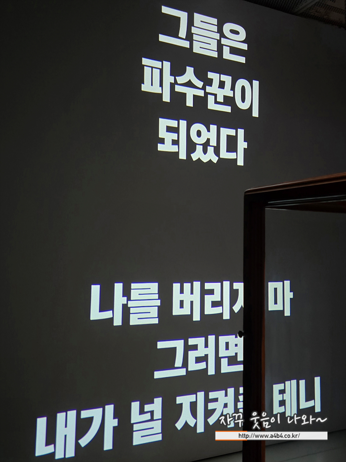 \전시장 벽 높은 곳에 걸려있는 작품...