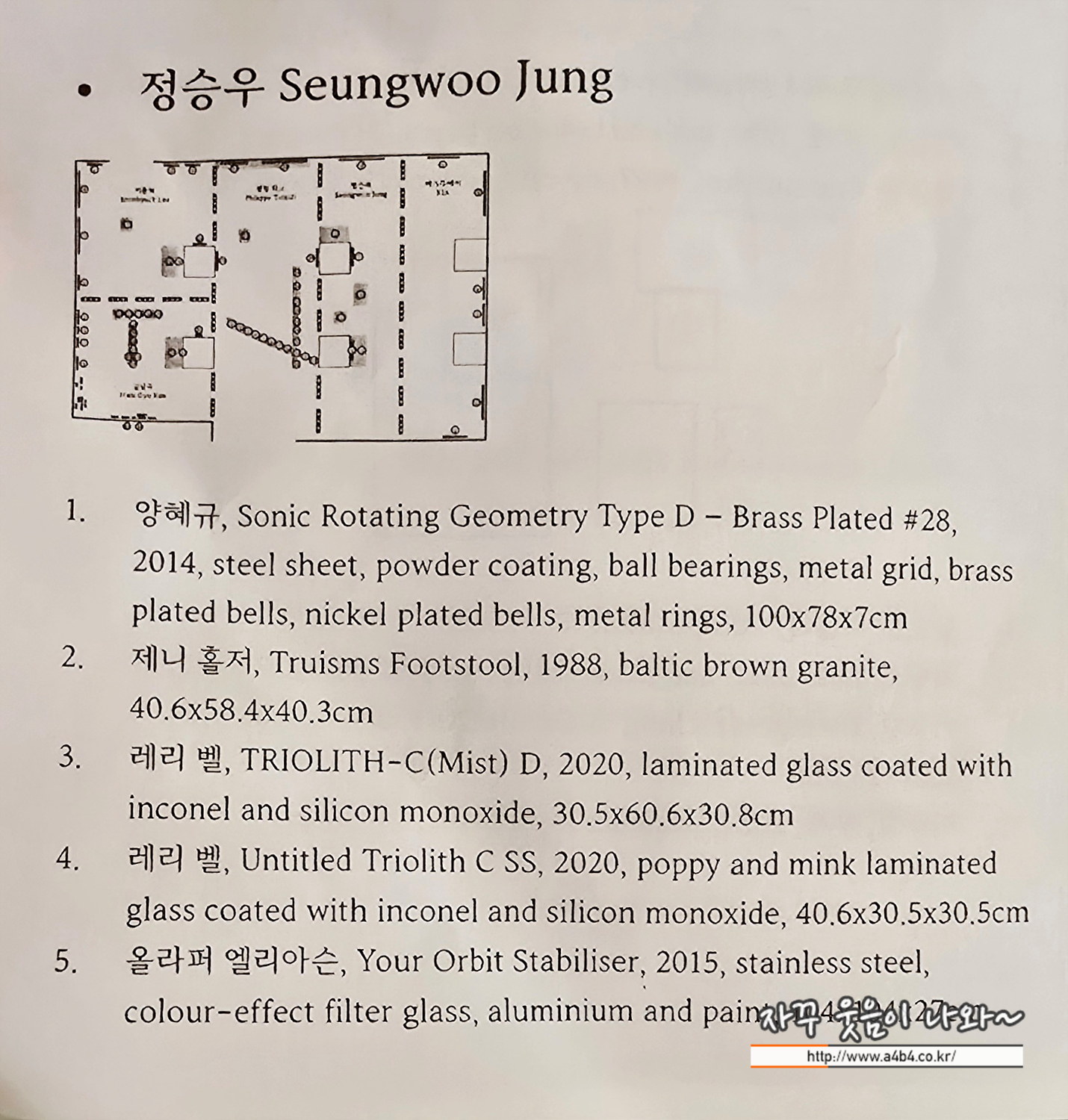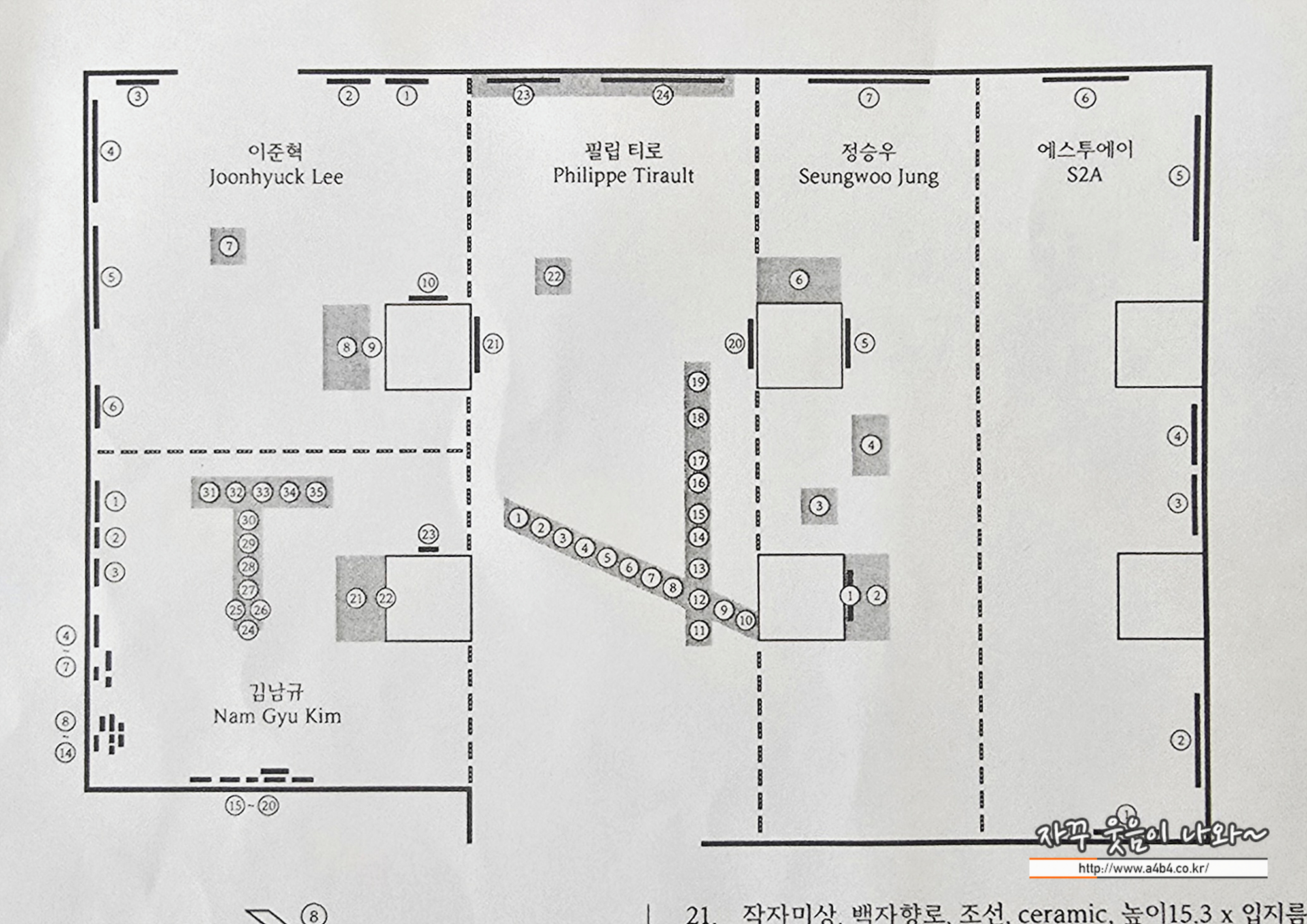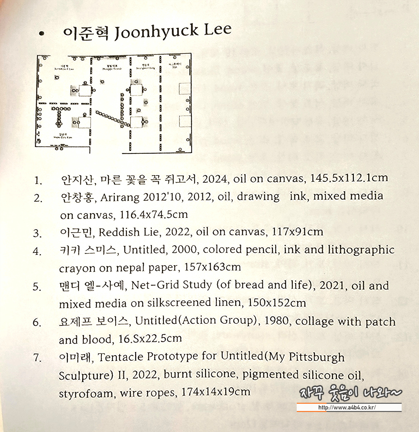 이번 전시회는 각각의 작품에 캡션은 없습니다. 전시장 입구에 비치된 안내지의 지도와 넘버를 비교하면서 작품의 작가와 작품명을 확인할 수 있습니다. 저는 다소 불편한 방식