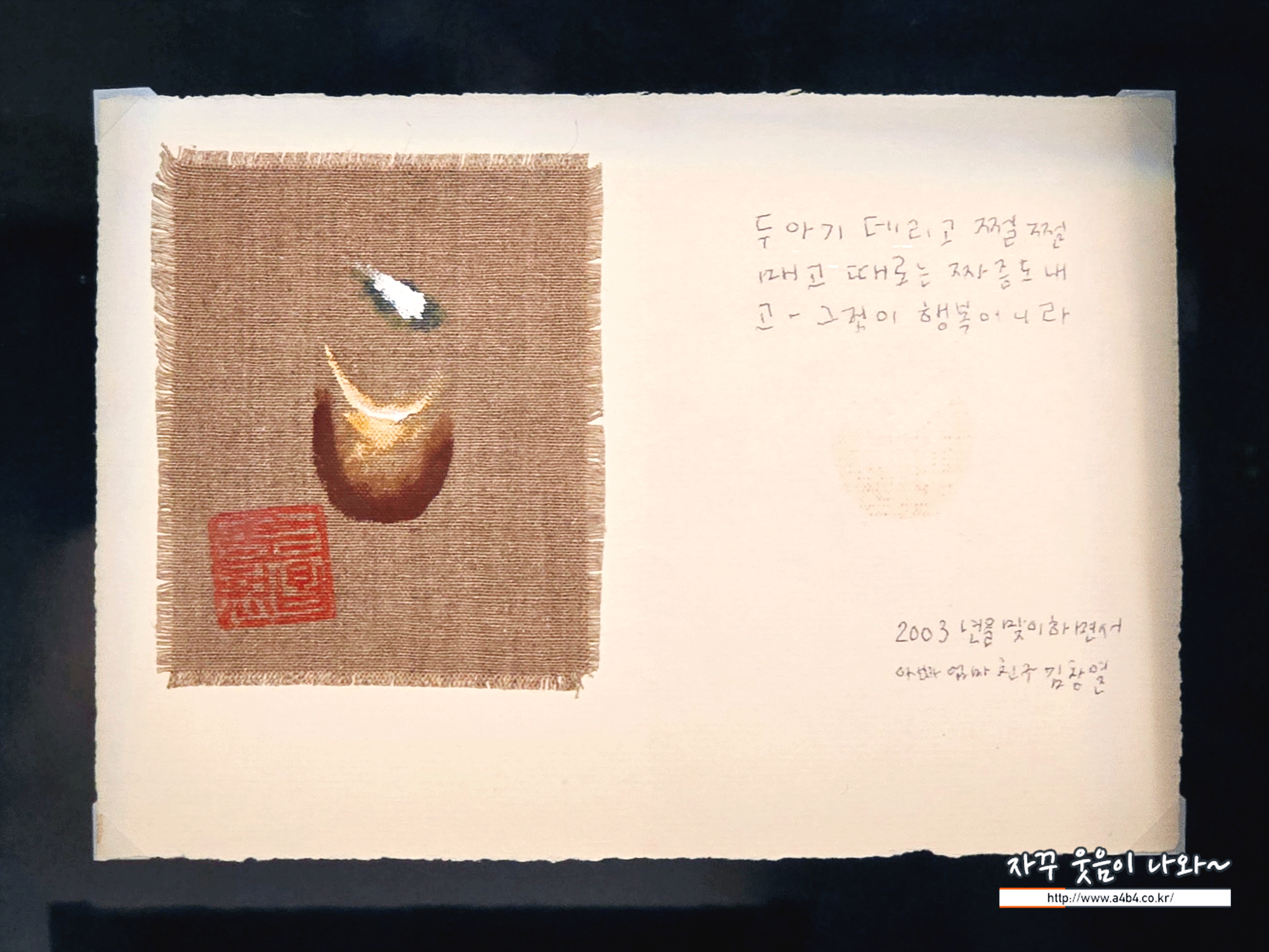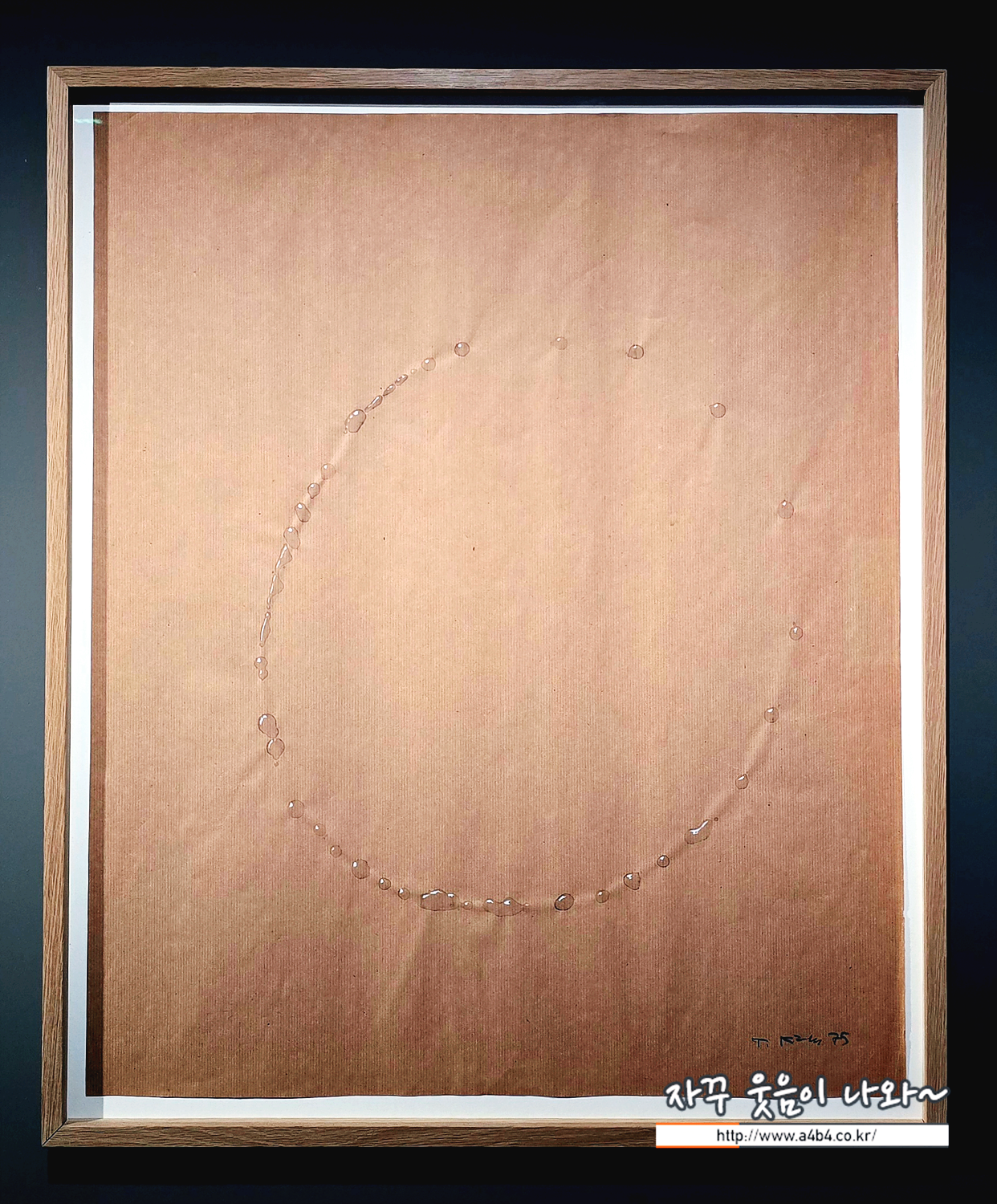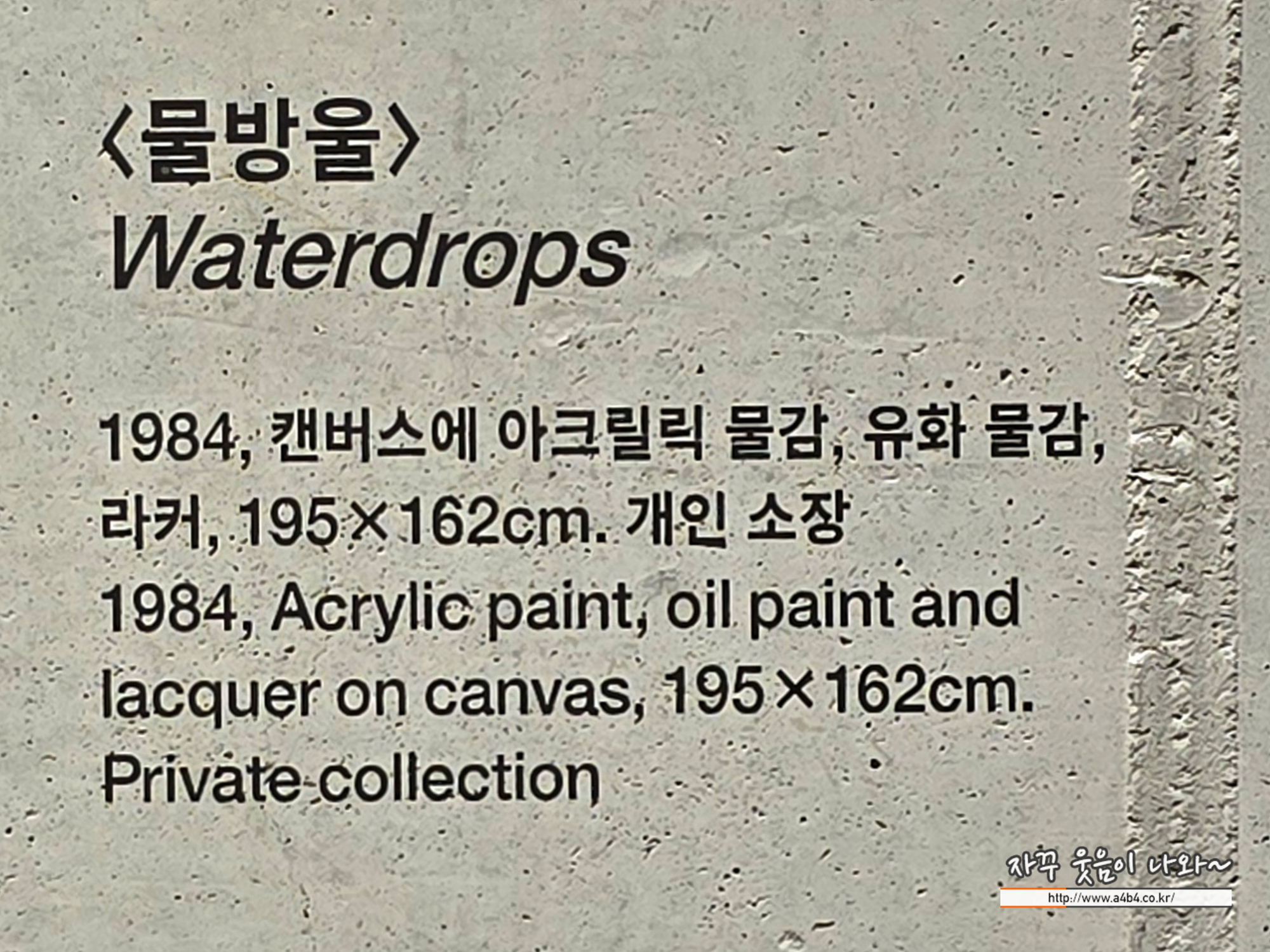이 물방울 작품은 작가의 방 '무슈 구뜨 도, 김창열' 전시회 공간에서 노란색 배경의 물방울과 함께 느낌이 너무 좋았던 작품.