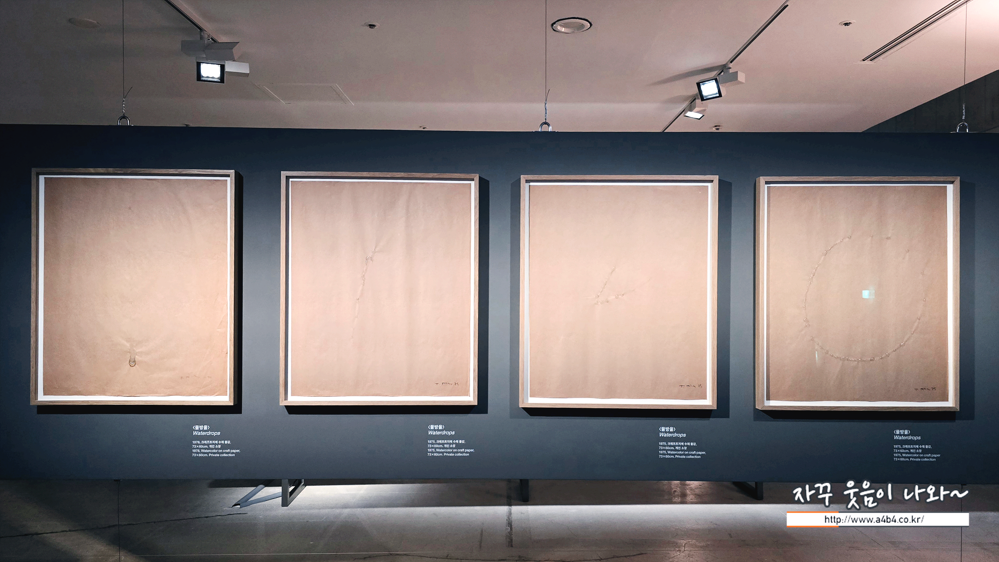 국립현대미술관 서울에서 열리고 있는 김창열 전시회 마지막 공간 '무슈 구뜨 도, 김창열' 8전시실 소개입니다.