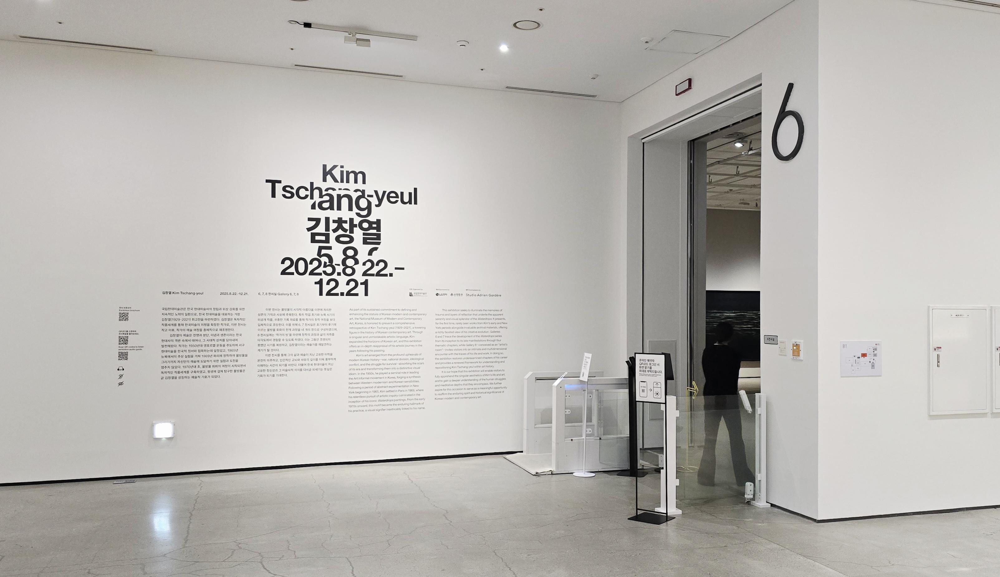 이번 김창열 회고전은 국립현대미술관 6~8관에서 열리며, 지하에 있는 6관과 7관은 2천원의 입장료로, 8관은 무료 관람이 가능합니다. 작품 감상에는 최소 120분 이상 생각하셔야 합니다.