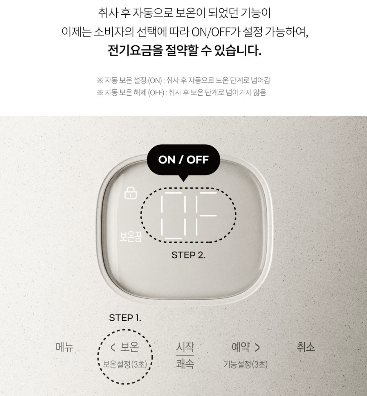 취사 후 보온기능 ON - OFF 기능화 자동 스팀세척 기능은 쿠첸 브레인 IH 압력밥솥 장점