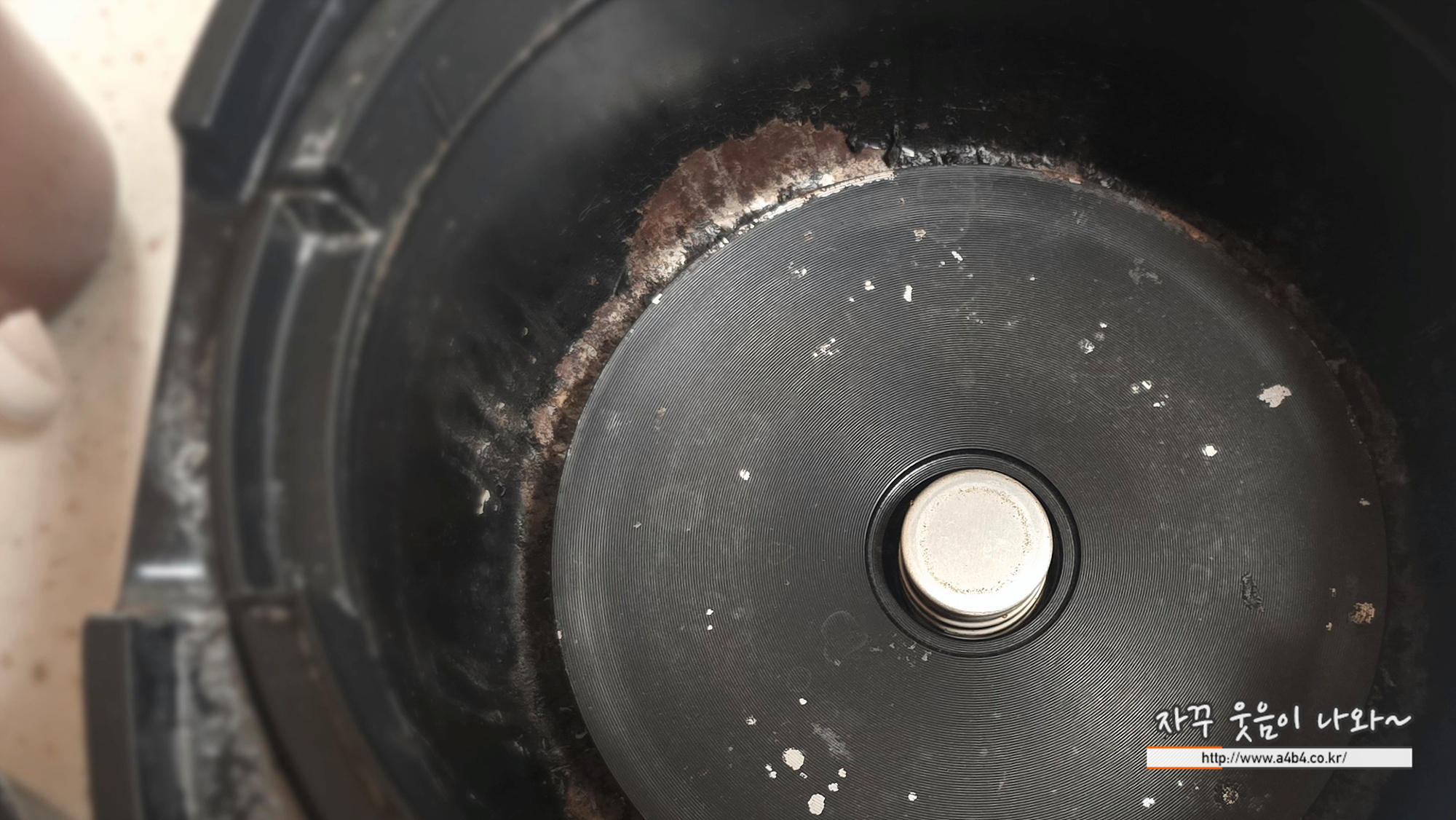내솥 상태가 메롱이네요. 오염도 오염이지만 코팅도 다 벗겨지고, 진작 떠나 보냈어야 하는데...