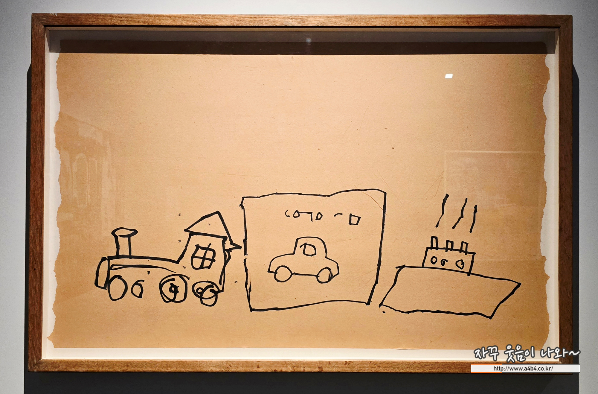 바로 오늘 소개하는 '장 미셸 바스키아 : 과거와 미래를 잇는 상징적 기호들' 전시회 첫 작품의 뒷면, 바로 유리창문에 작업한...