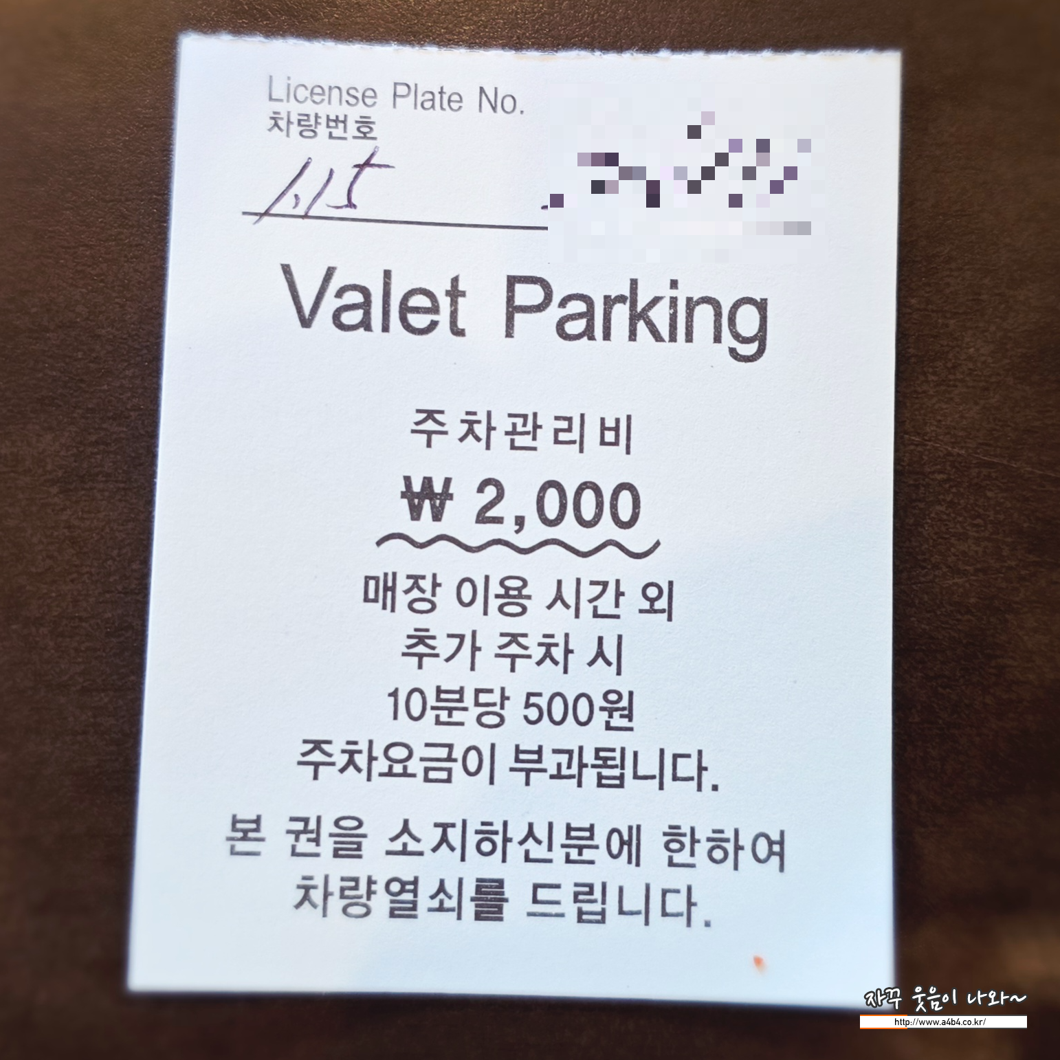 발렛비용은 2,000원이며, 식사후 청와옥에서 해당 주차권에 도장받아 오시면 청와옥 본점 주차요금 없이 발렛비용만 지급하시면 됩니다.