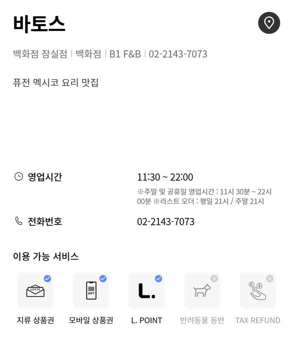 | 잠실 바토스 영업시간 및 휴무일