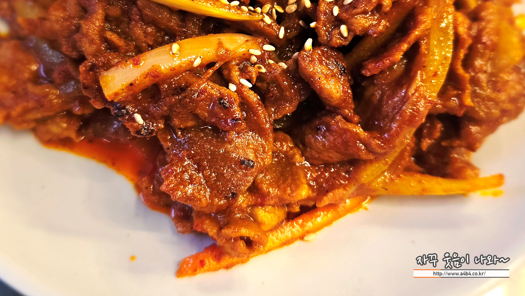 점심식사로 먹기에 딱 좋은 제육볶음으로 나왔습니다.