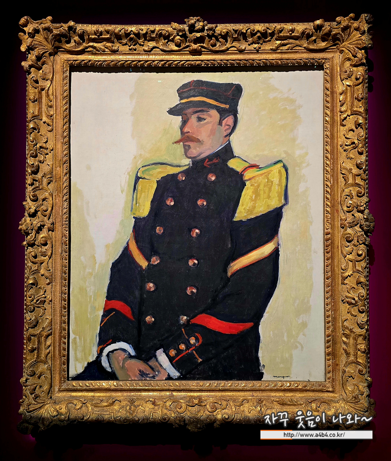 알베르 마르케는 앙리 마티스, 앙드레 드랭, 모리스 드 블라맹크 등과 함께 야수파의 시작을 알린 화가다. 이 작품에서 마르케는 콧수염을 기른 근엄한 표정의 군인을 그렸다. 제목으로 보아, 이 인물은 프랑스가 동남아시아, 서인도제도, 북아프리카 등지로 식민지를 확장하던 시기에 해외에 파견된 군인임을 알 수 있다. 반짝이는 놋쇠 단추와 황금색 견장, 붉은색과 금색 띠는 짙푸른 군복과 대조를 이루며 야수파 특유의 생동감 있는 색채를 보여준다.