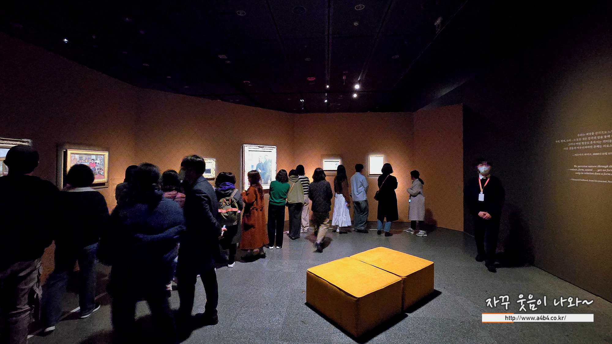 상당히 어둡고 붉은 방... 조명을 참 잘 사용한 공간이 인상주의에서 초기 모더니즘까지, 빛을 수집한 사람들 전시회 두 번째 공간입니다.