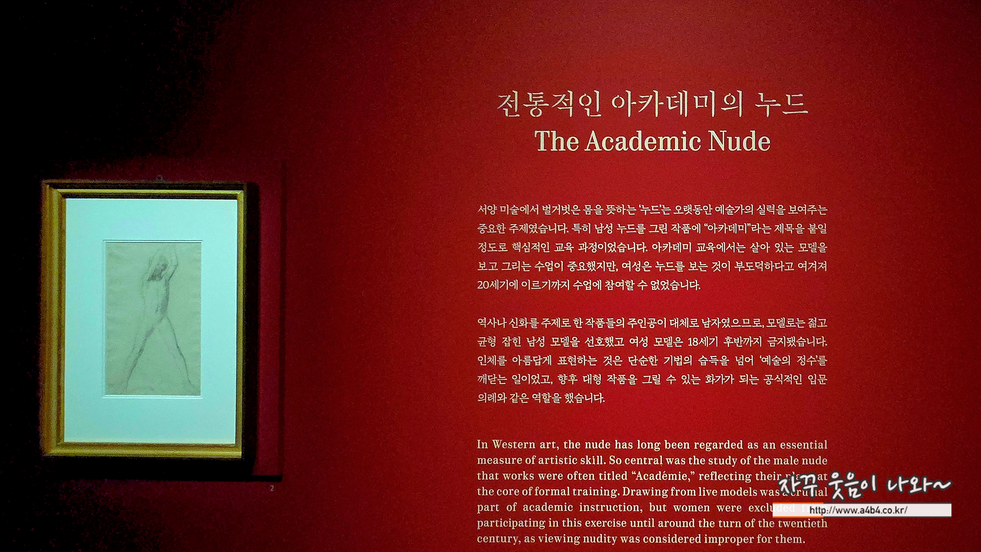 서양 미술에서 ‘누드’는 오랫동안 예술가의 실력을 보여주는 핵심 주제였습니다. 남성 누드 작품에 “아카데미”라는 제목을 붙일 정도로, 이는 중요한 교육 과정이었습니다. 아카데미 교육에서는 살아 있는 모델을 보고 그리는 수업이 중심이었지만, 여성은 부도덕하다는 이유로 20세기까지 참여가 제한됐습니다.