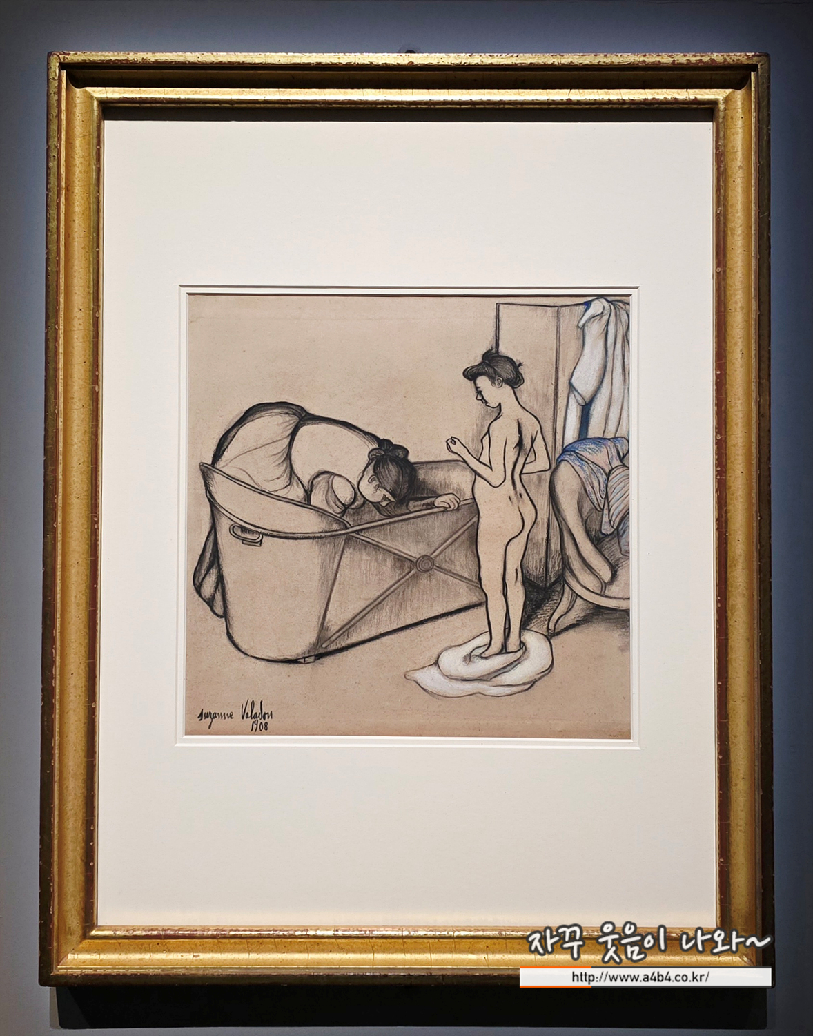 이 시기 여성 화가들은 ‘목욕’이라는 주제로 누드를 그릴 기회를 얻었다. 쉬잔 발라동도 목욕을 주제로 한 드로잉을 많이 그렸다. 이 작품은 한 여성이 목욕 준비를 하고, 옆에 사춘기 소녀가 서 있는 일상의 모습을 담았다. 소녀는 옷을 벗은 채 기다리고 있고, 나이 든 여성은 몸을 수그린 채 준비하고 있다. 소녀의 발치에 놓인 천, 의자 위의 푸른 줄무늬 드레스, 가림막에 걸어둔 흰 가운 등은 분필로 밝게 칠했다.