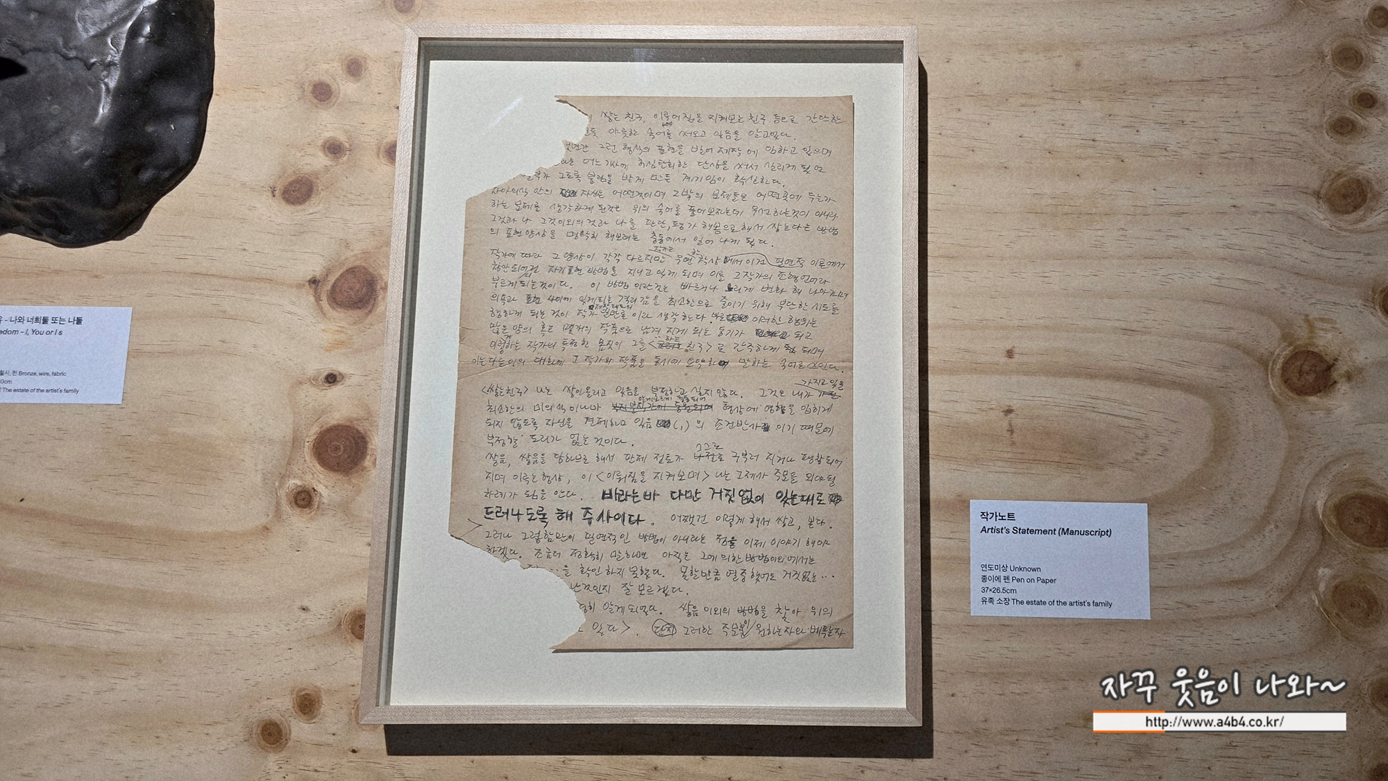 작가의 수필, 작가노트 등의 자필 원고와 디지털 아카이브를 만나볼 수 있는 공간입니다.