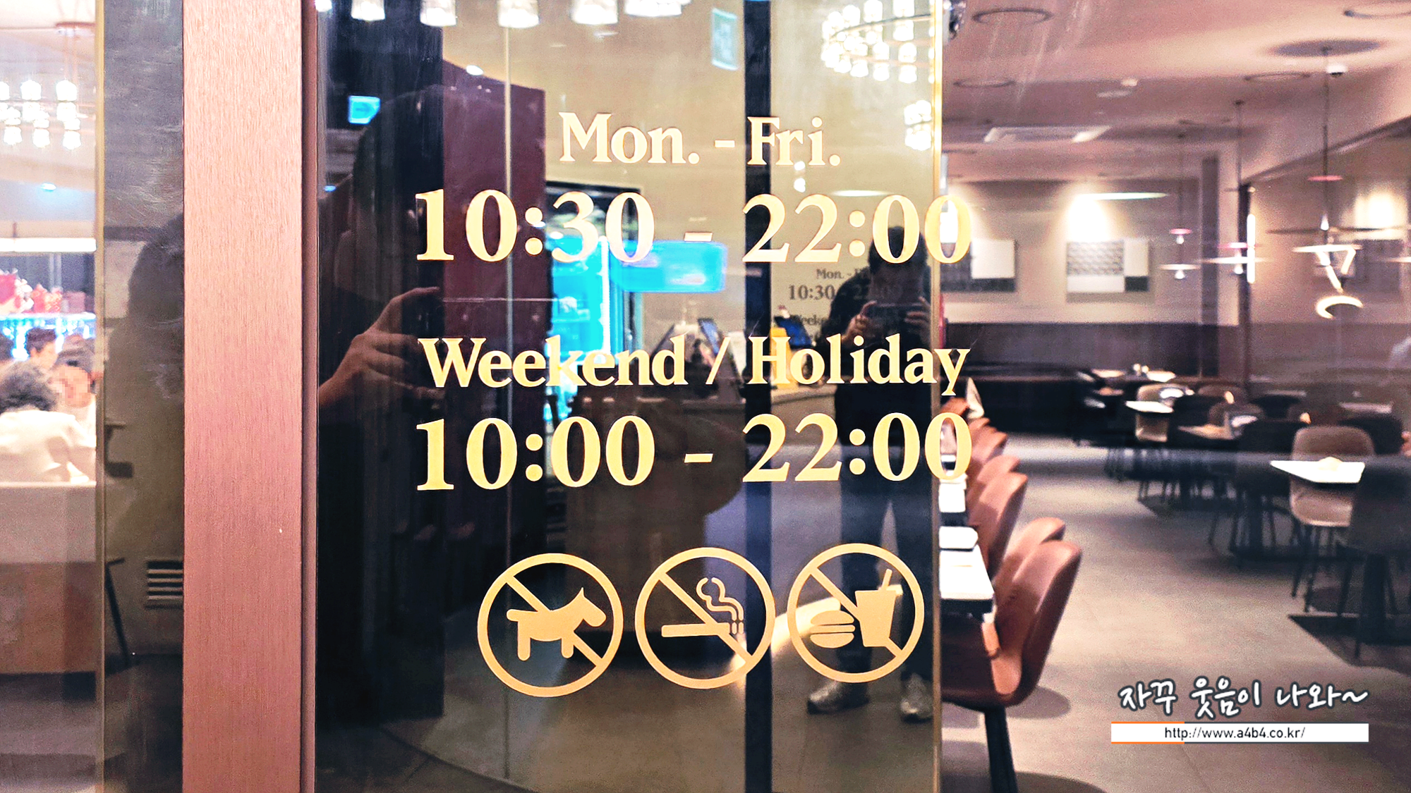 평일에는 10:30 ~ 22:00 까지이며, 주말과 공휴일에는 30분 일찍 10시에 오픈합니다.