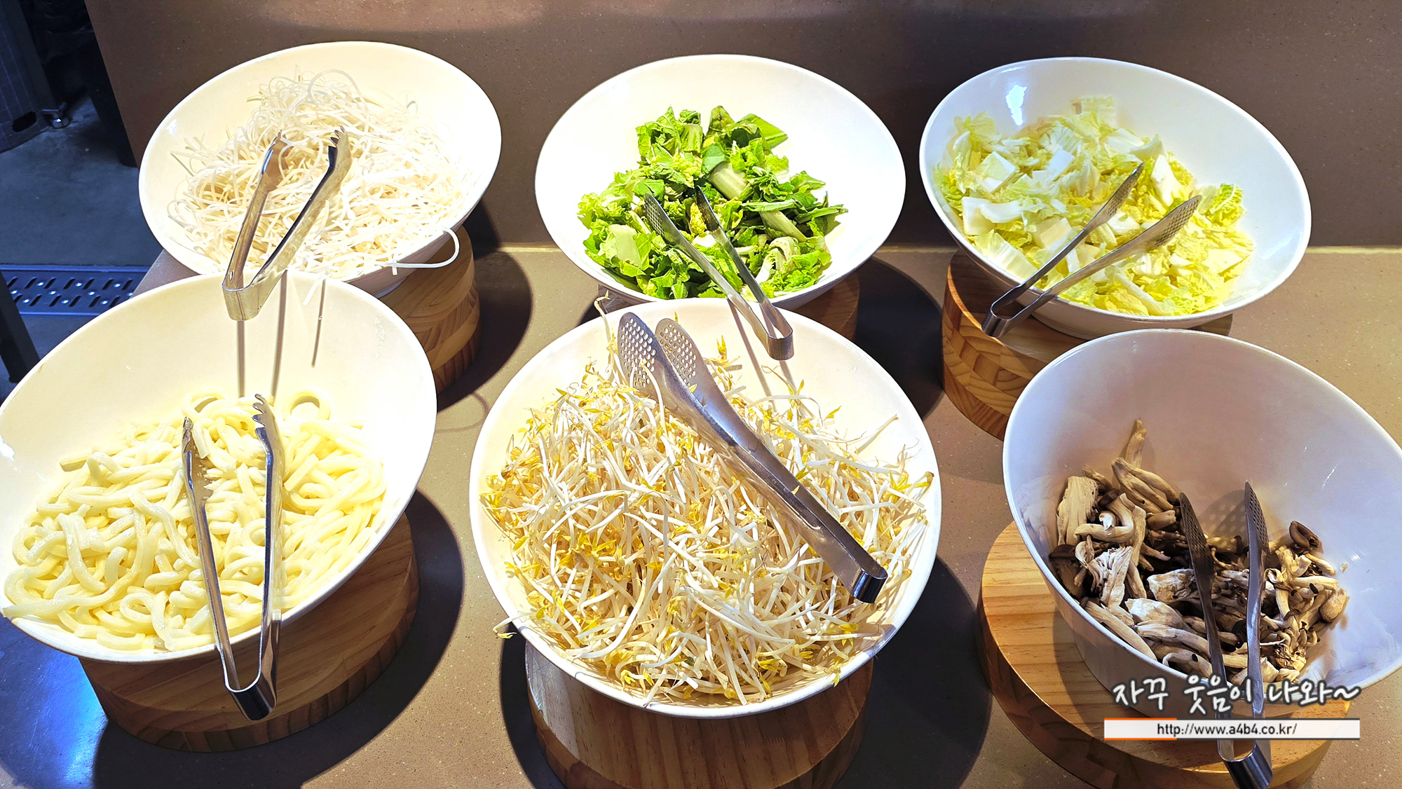 숙주나, 버섯, 배추등을 추가해서 조합한 후