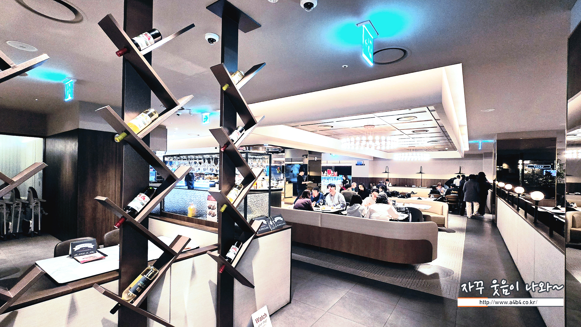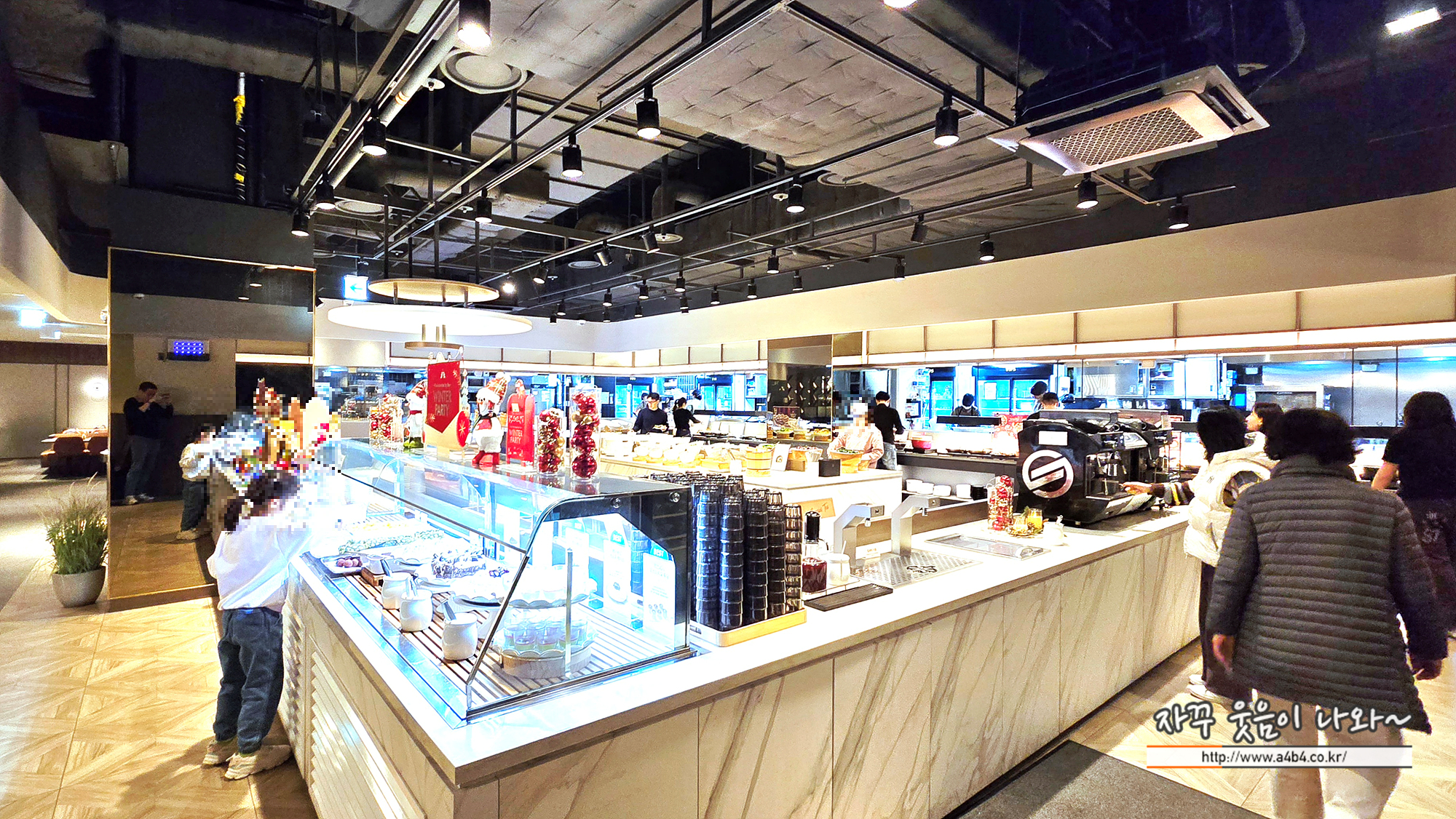 중앙과 안쪽으로 음식이 았고 반대 방향에 식사 테이블과 룸이 있는데요. 기대보다는 음식과 매장규모가 크지는 않았네요.