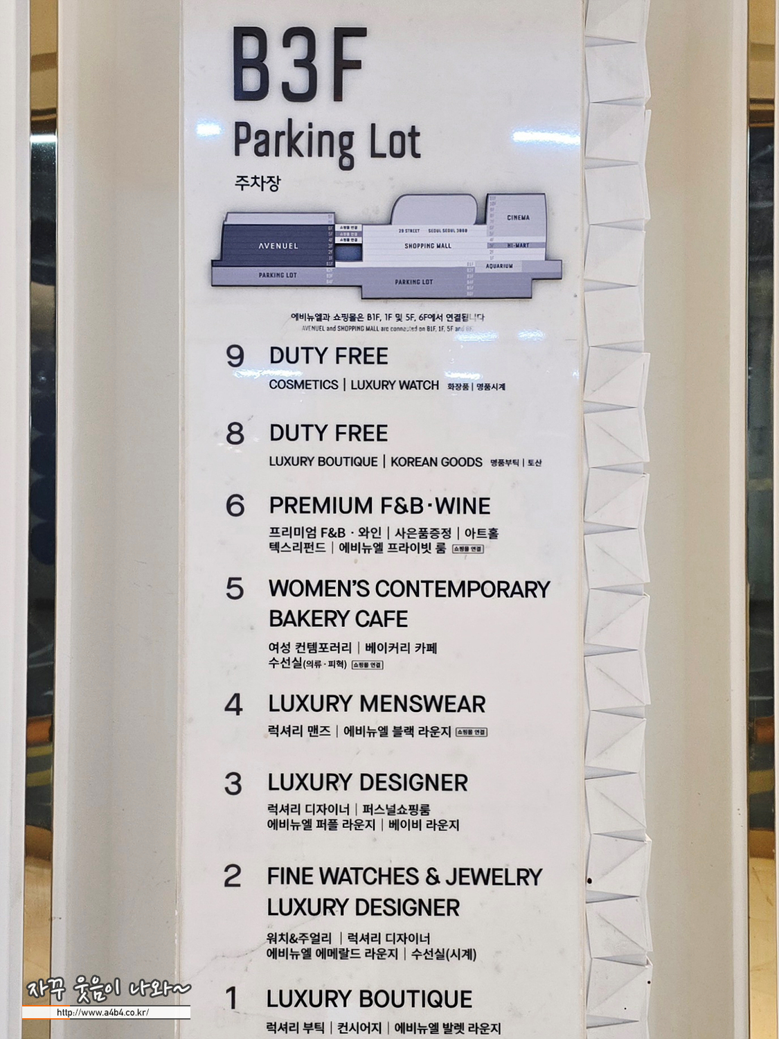 롯데월드몰과 롯데월드타워, 에비뉴엘은 주차장이 하나로 연결되어 있는데요. (잠실 롯데백화점과는 분리되어 있음) 다만 주차장이 워낙 넓어서 어느 곳을 방문하느냐에 따라 주차구역을 잘 선택하셔야 합니다. 만약 정 반대 주차장에 주차하셨다면 500미터 정도 더 걸으셔야 합니다.