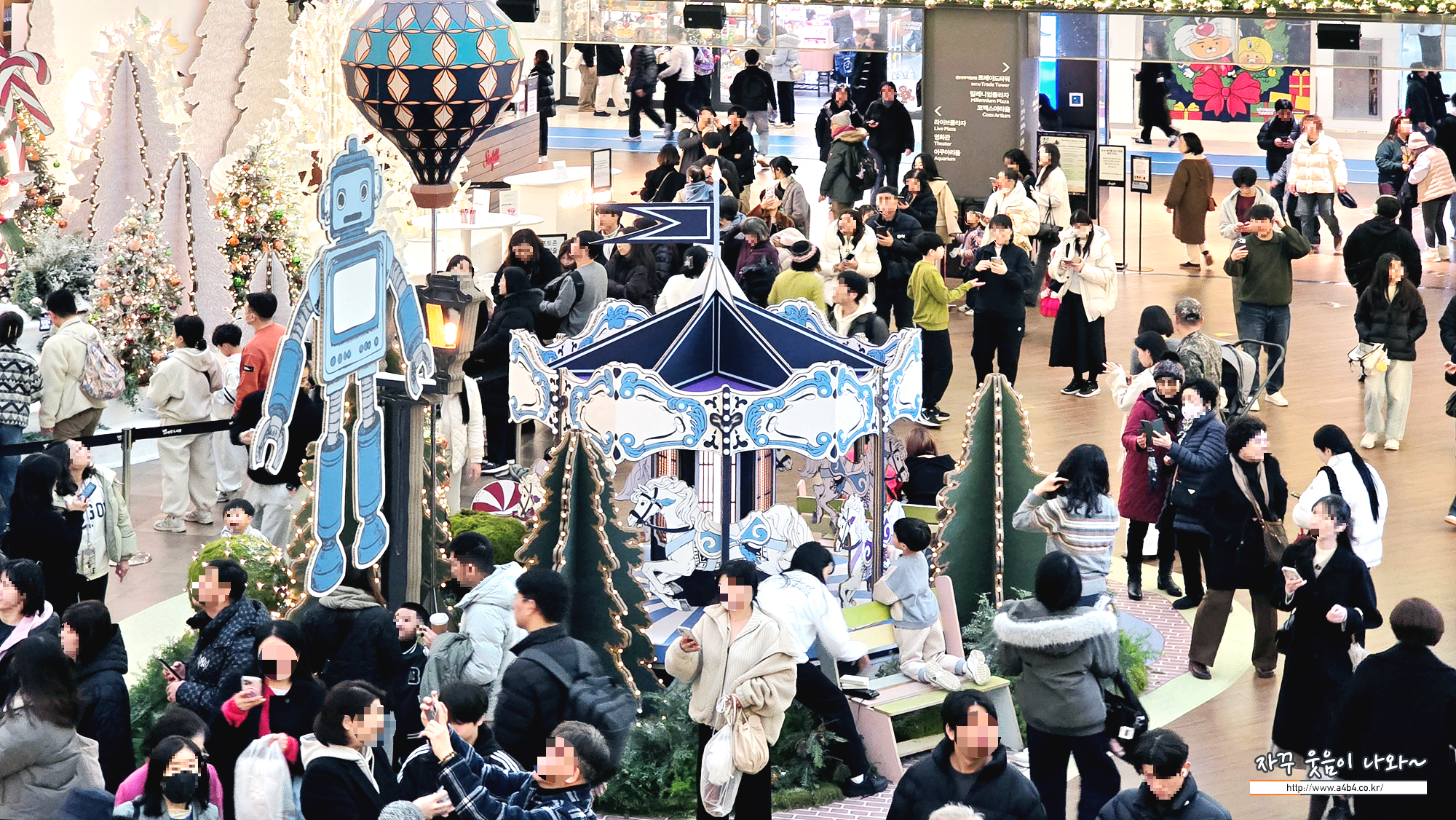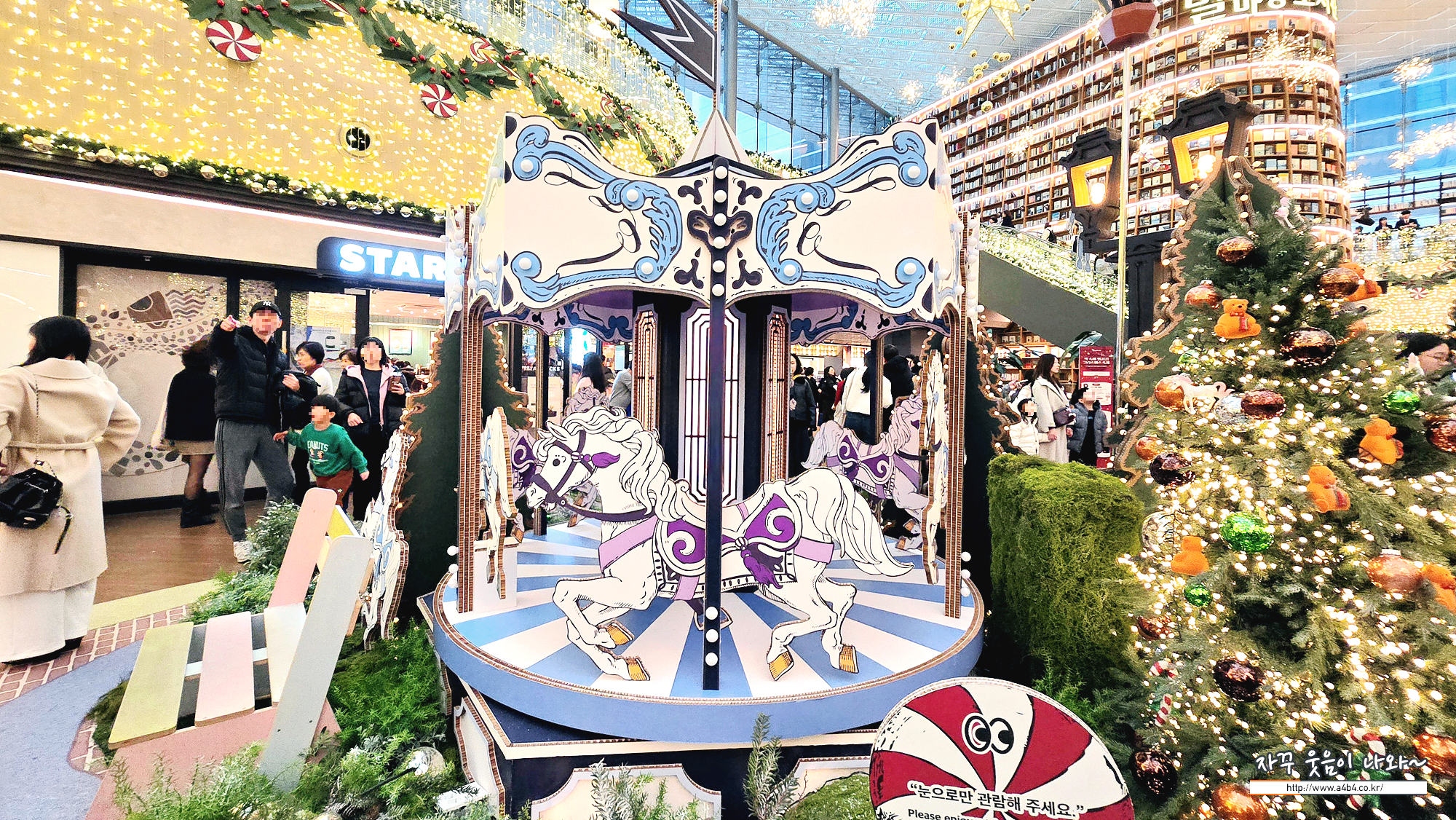 코엑스몰 크리스마스트리 주변에는 여러 포토존이 있는데요. 회전목마 등 인기있는 설치물 앞에서 사진찍기 위해서는 10~20분 이상 웨이팅이 필요합니다.