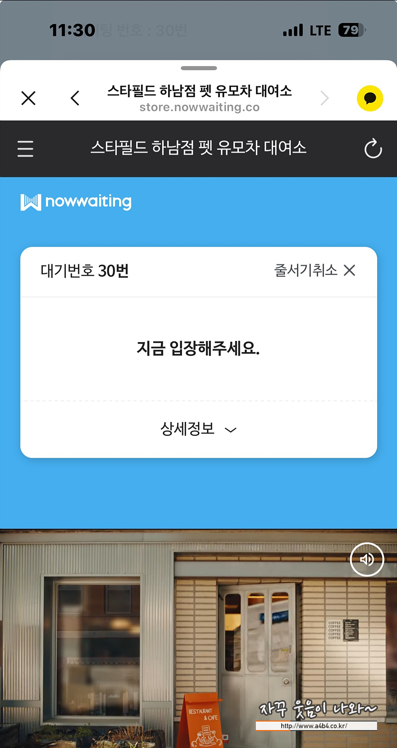 저희가 신청한 시간에는 앞에 4팀이 예약되어 있었고 12분 정도 웨이팅해야 하는데 15분 후에 유모차 대여 가능했네요.