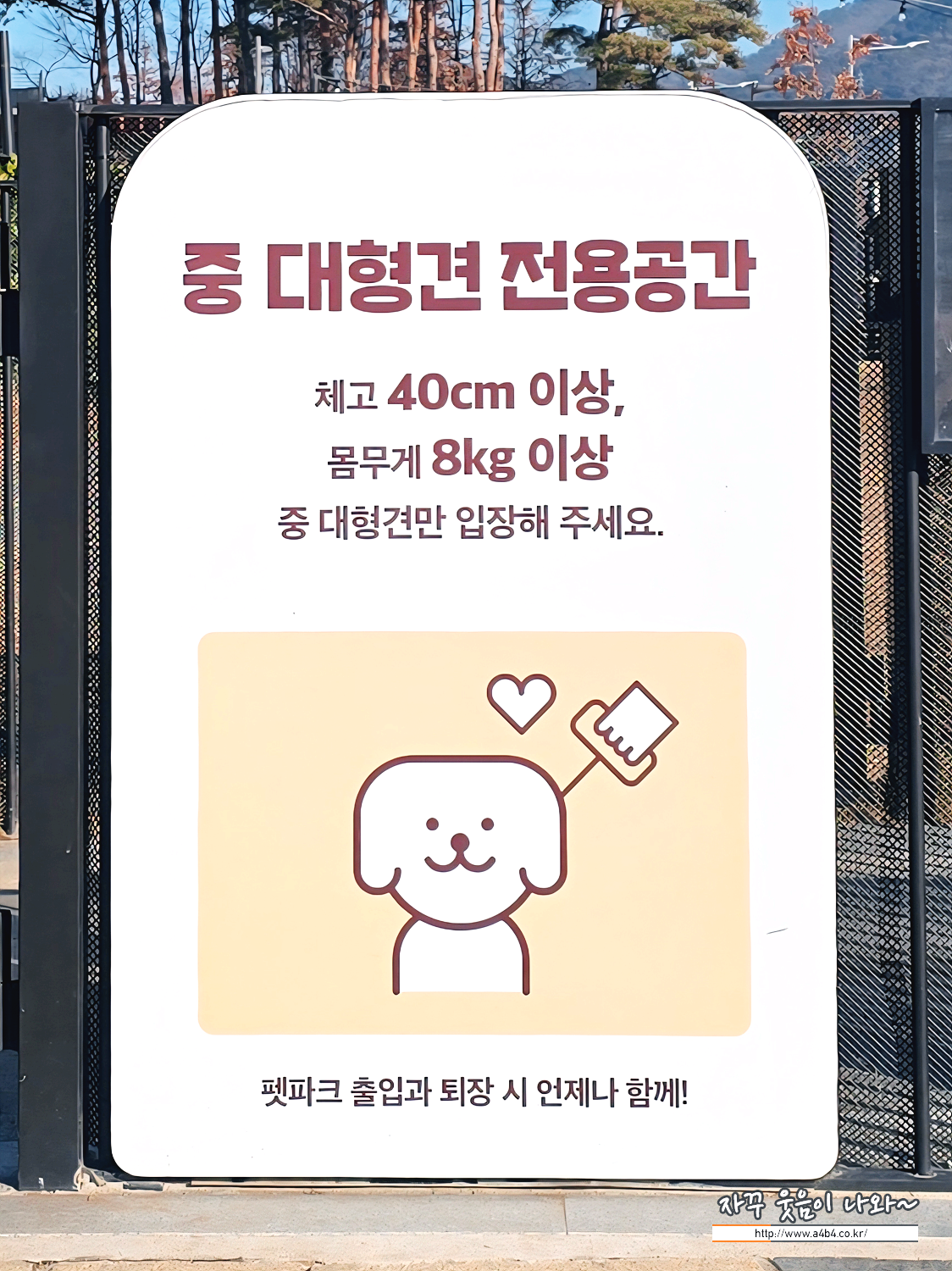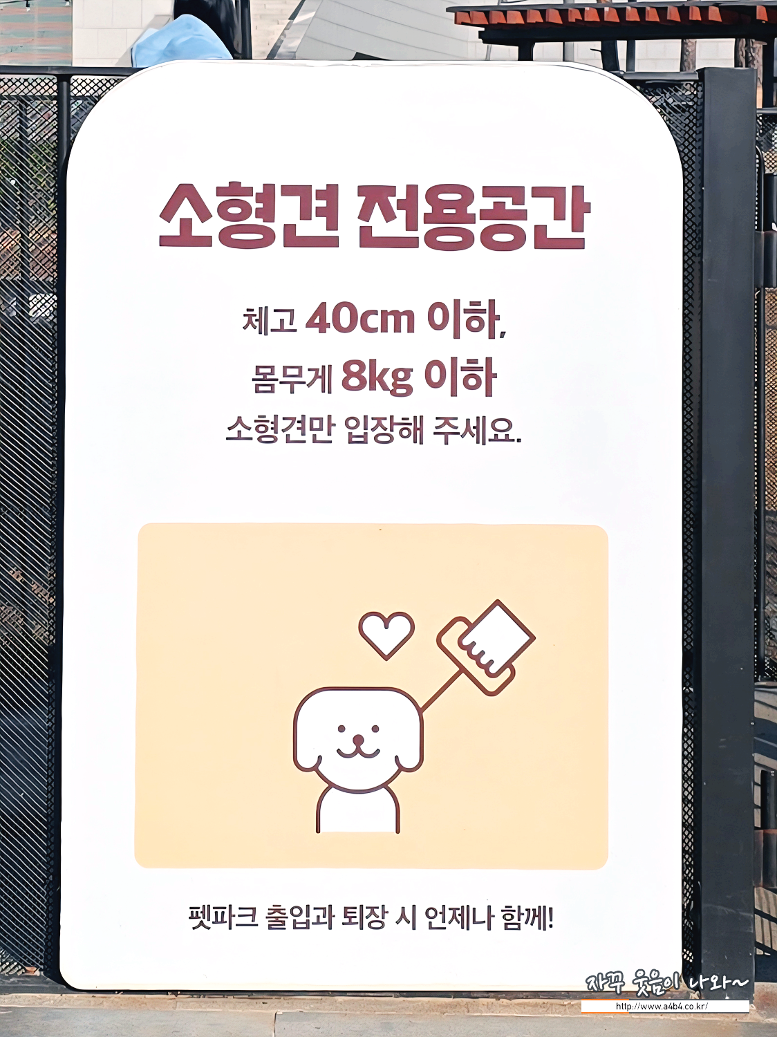 이곳은 별다른 출입 제한은 없습니다. 작은 강아지도 들어올 수 있지만 책임지지는 않는다는, 중형견과 대형견이 같이 있다보면 8kg전후 중형견들이 가장 애매하기는 합니다. 소형가면 너무 크고, 중대형오면 너무 작은...