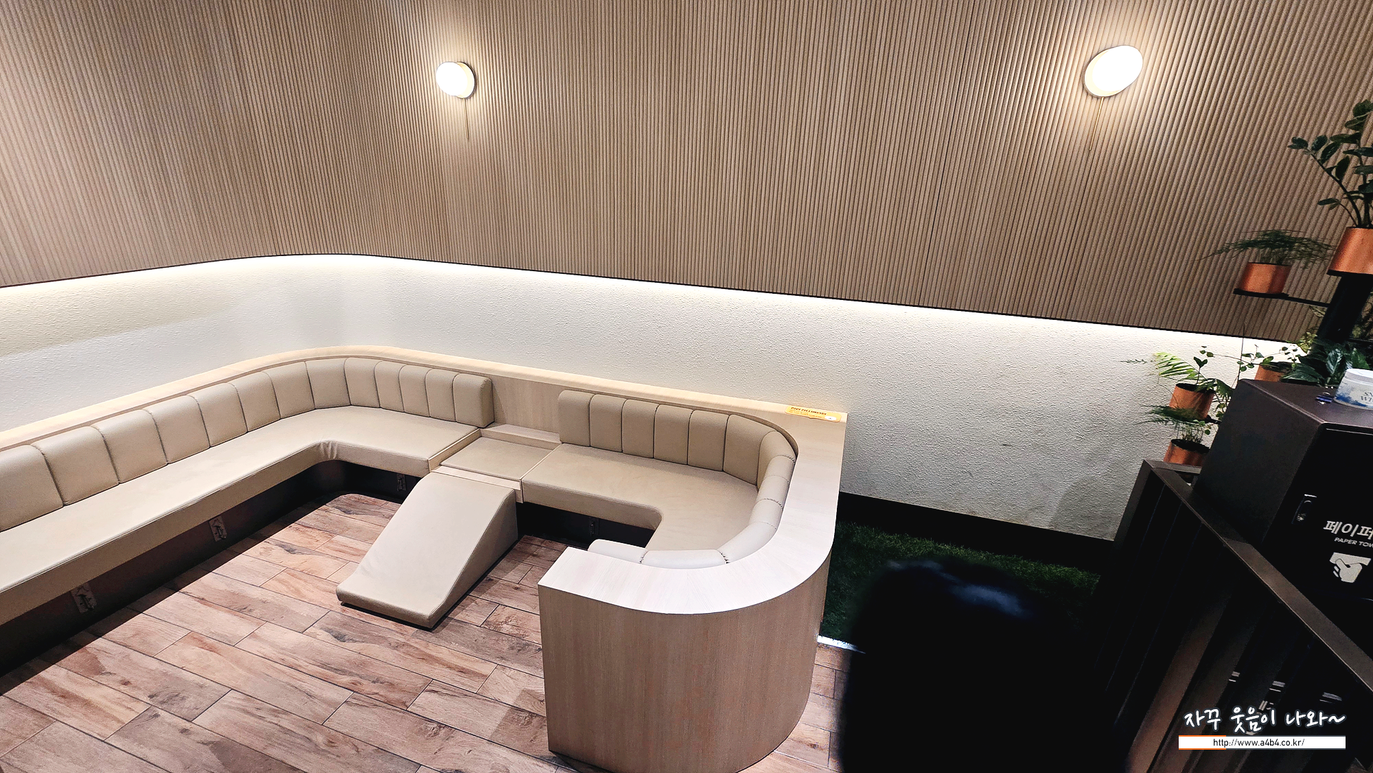 스타필드 펫라운지 밖에는 정수기가 있고요. 안쪽에는 배변공간과 강아지도 올라와서 쉴 수 있는 쇼파가 준비되어 있습니다.