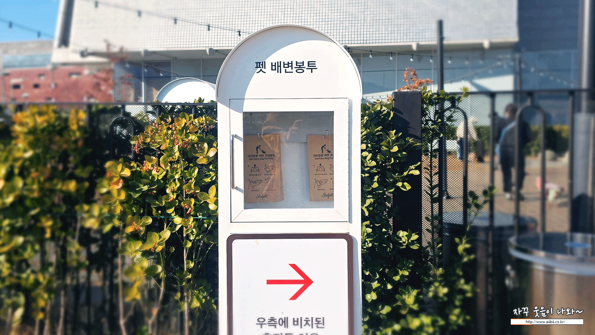 스타필드 하남 펫파크는 스타필드 정면으로 바라보고 오른쪽 옆에 위치해 있습니다. 보통 몰리스펫샵 쪽 출구를 통해 나가시면 됩니다.
