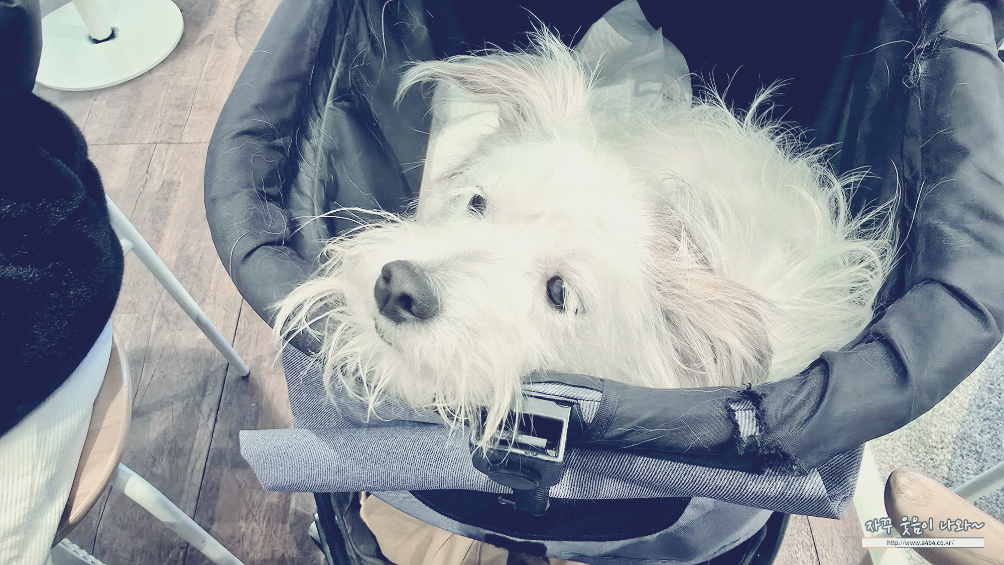 우리 설탕이도 개모차 안에서 점심 먹을 준비 완료!!!