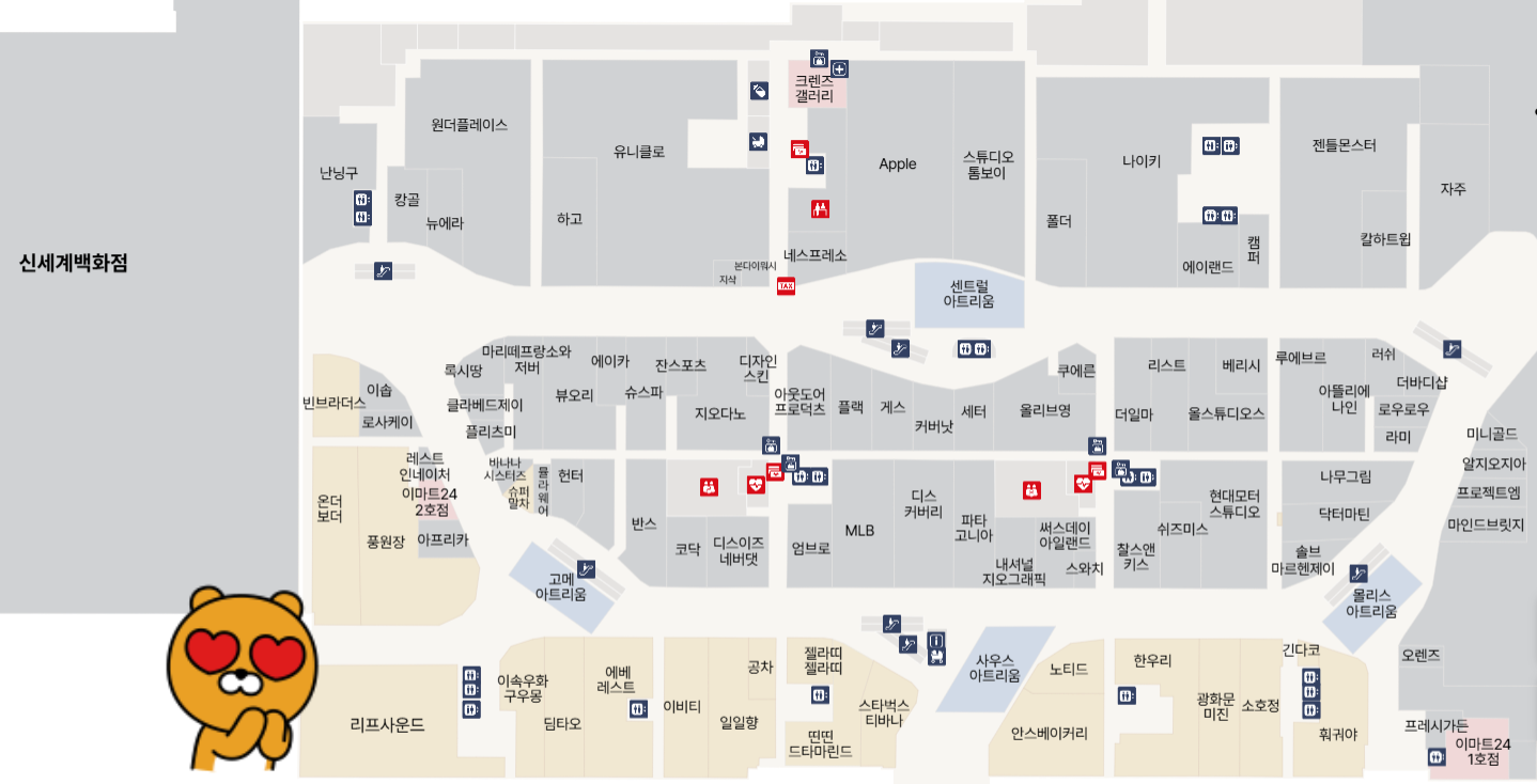 리프사운드 위치는 스타필드 하남 1층 서쪽 끝부분에 있습니다. 신세계백화점 방향으로 아래 지도 라이언이 있는 곳입니다.