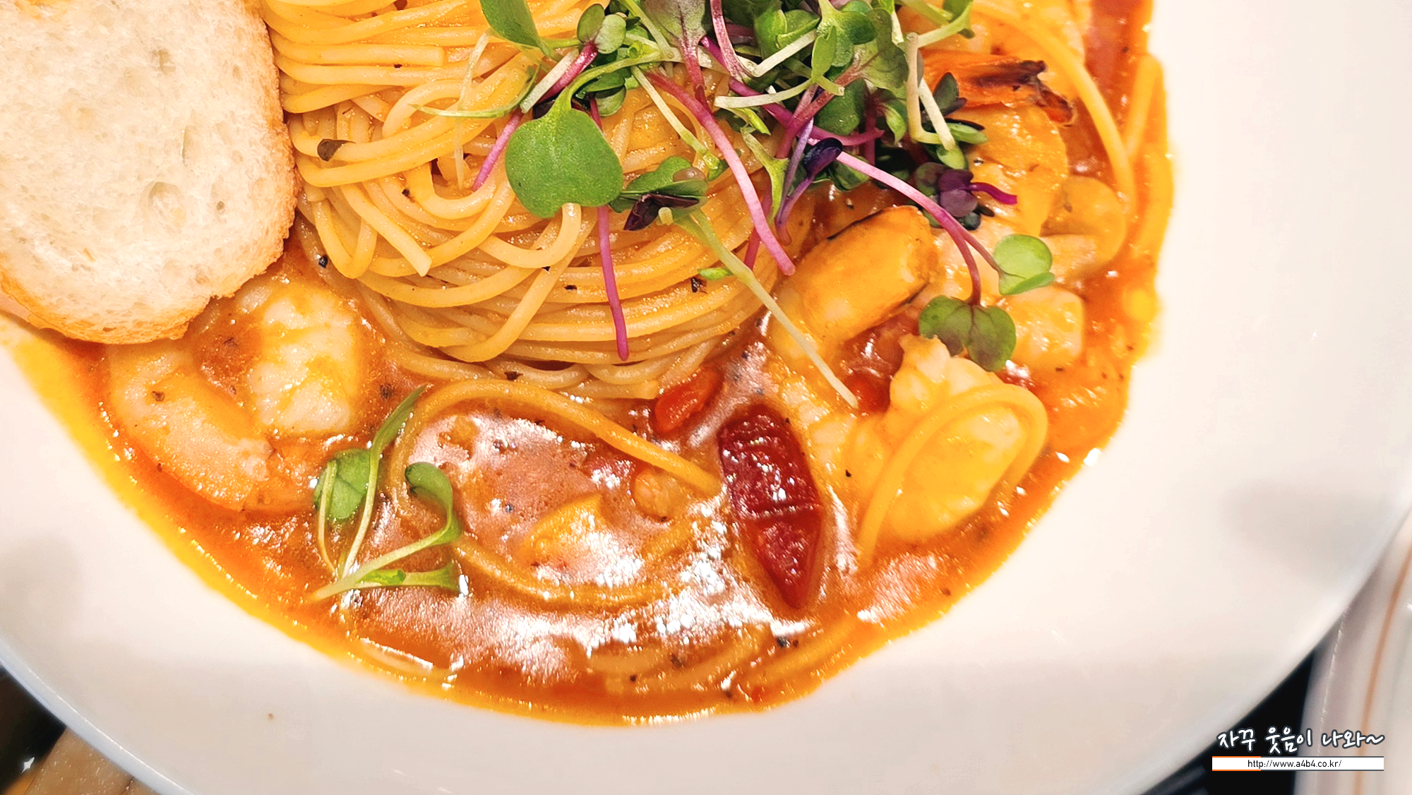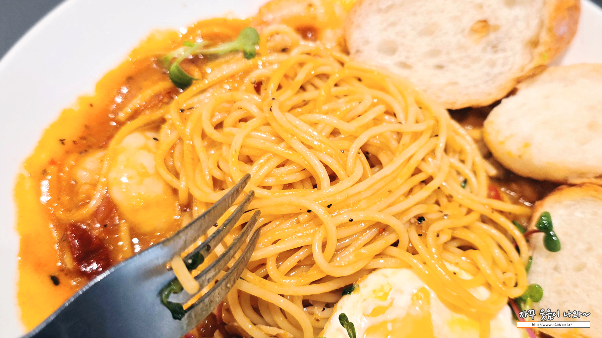파스타 면과 소스양이 푸짐하네요. 성인 남성도 혼자 먹기에 충분한 양입니다.