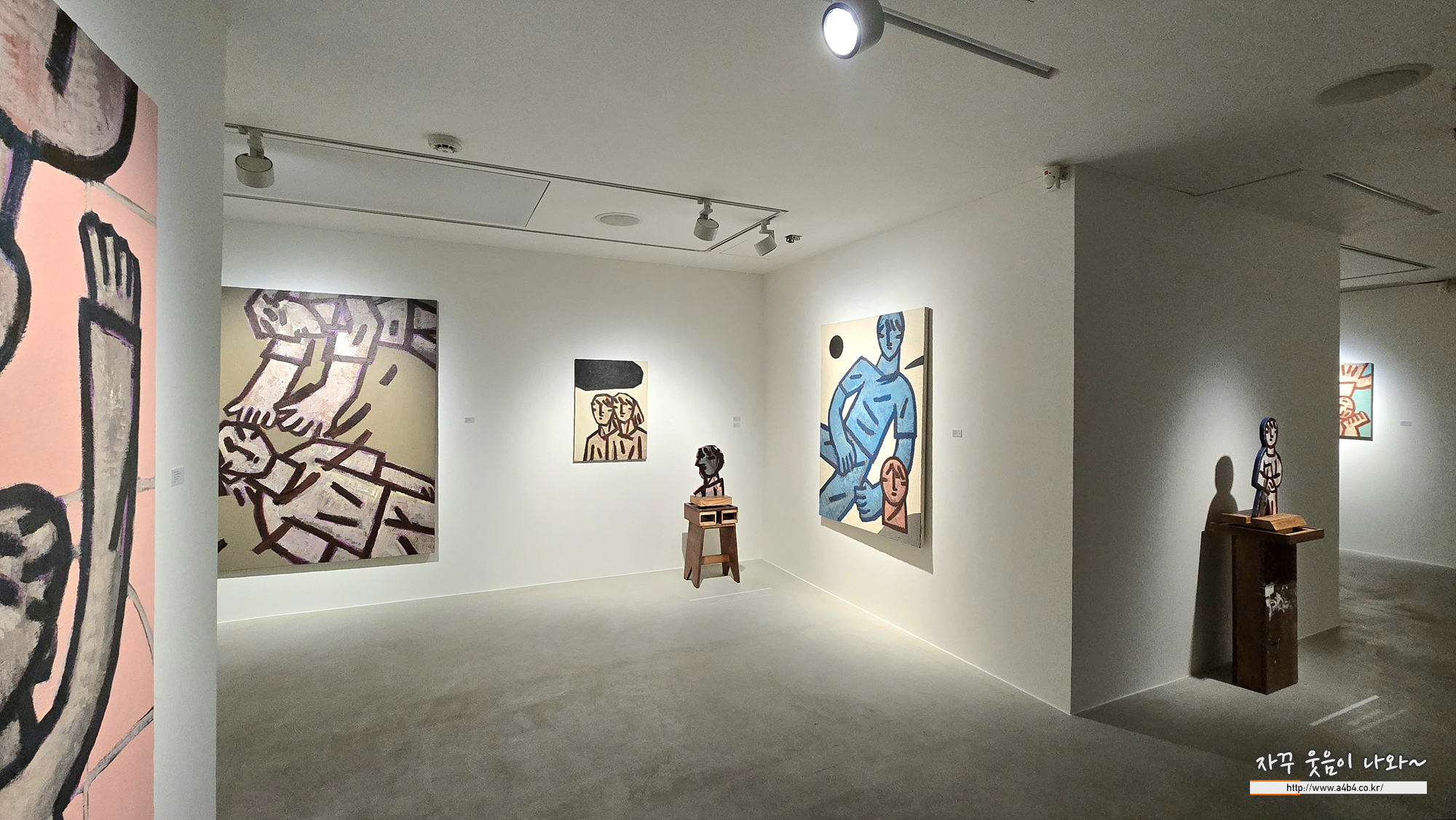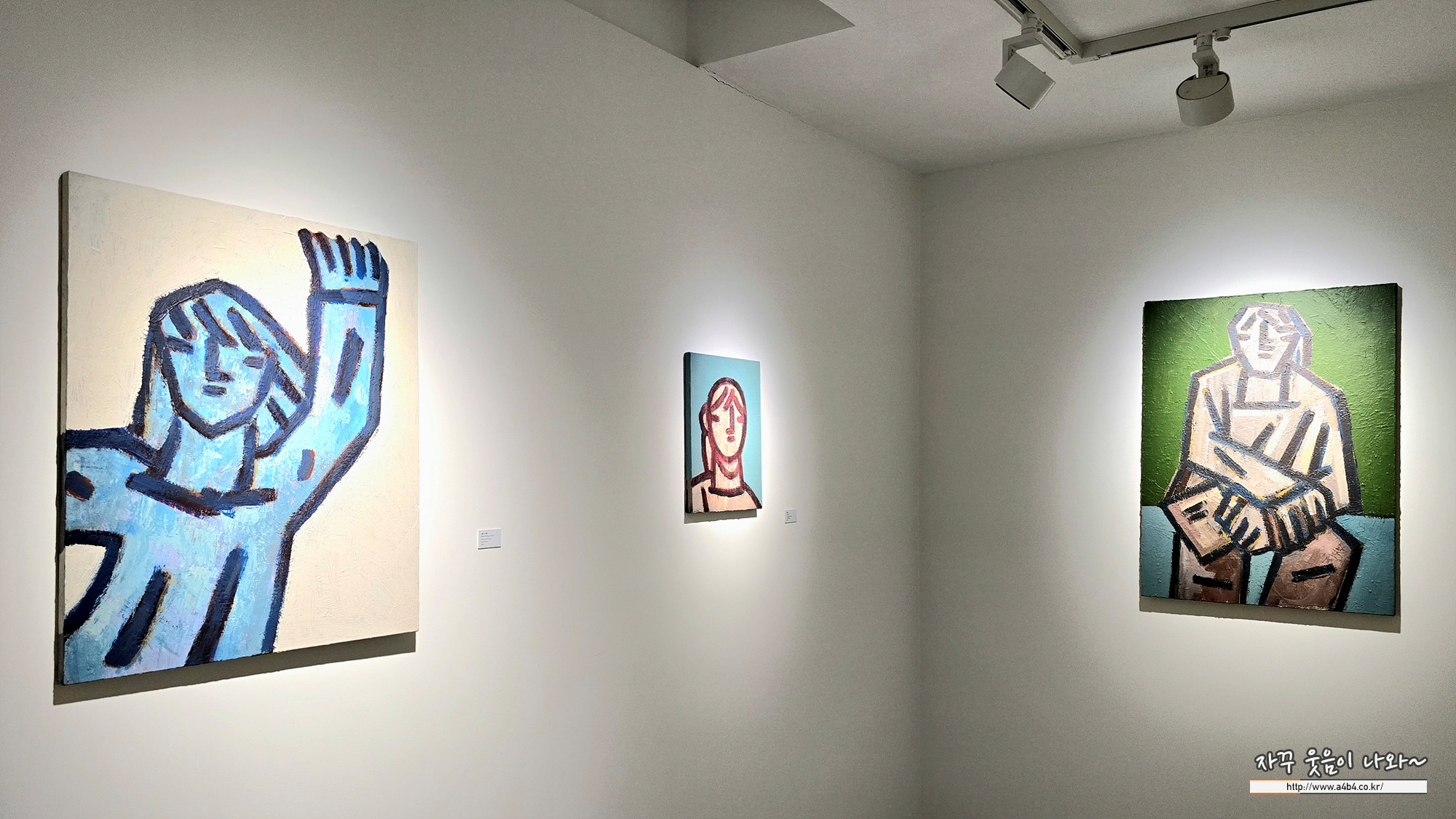 이번 전시회 작품은 회화와 조각작품으로 구성되어 있는데요. 회화작품은 캔버스에 아크릴 물감으로 작업했습니다. 거칠고 굵은 선이 너무나도 인상적인 작품들...