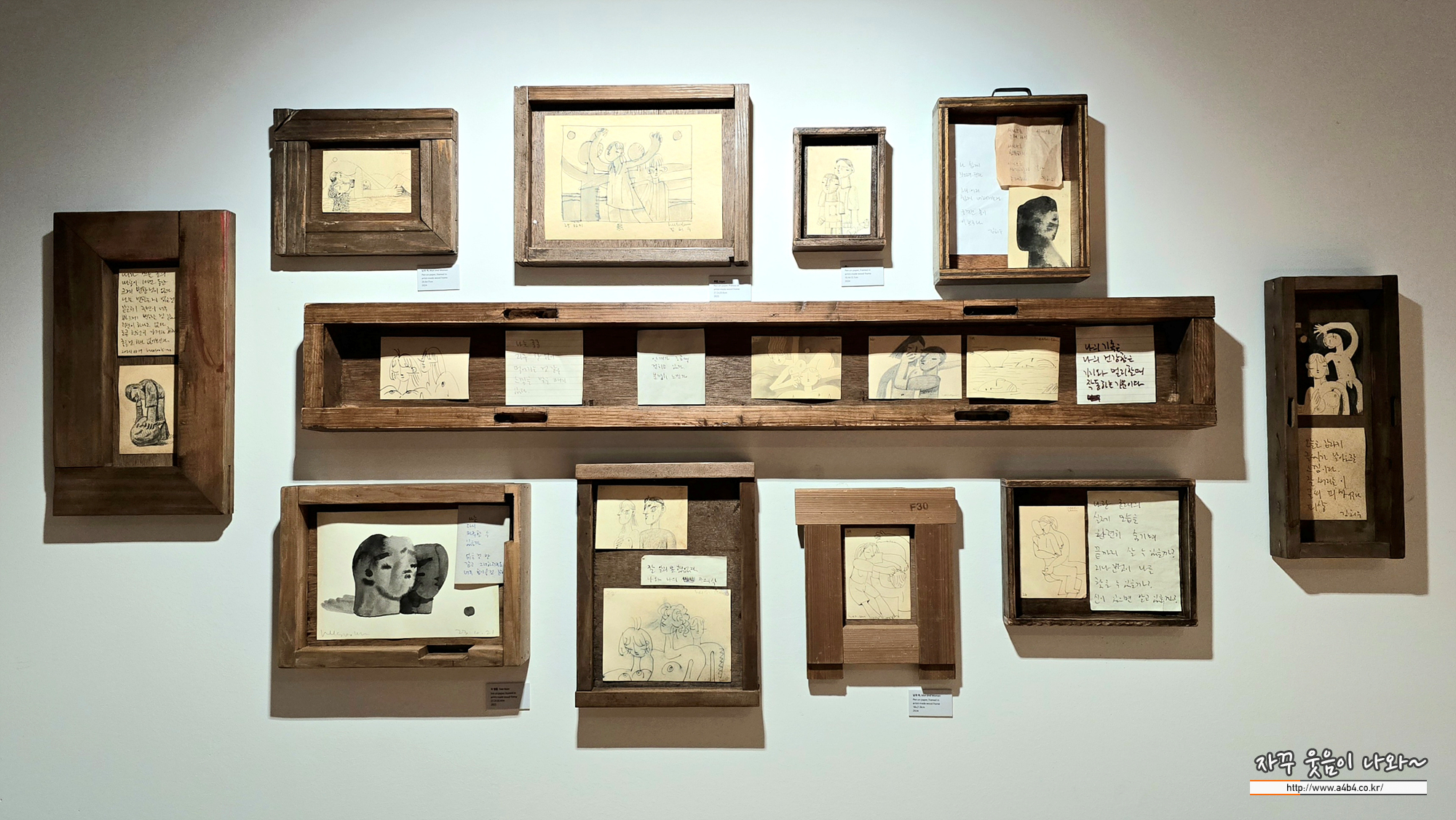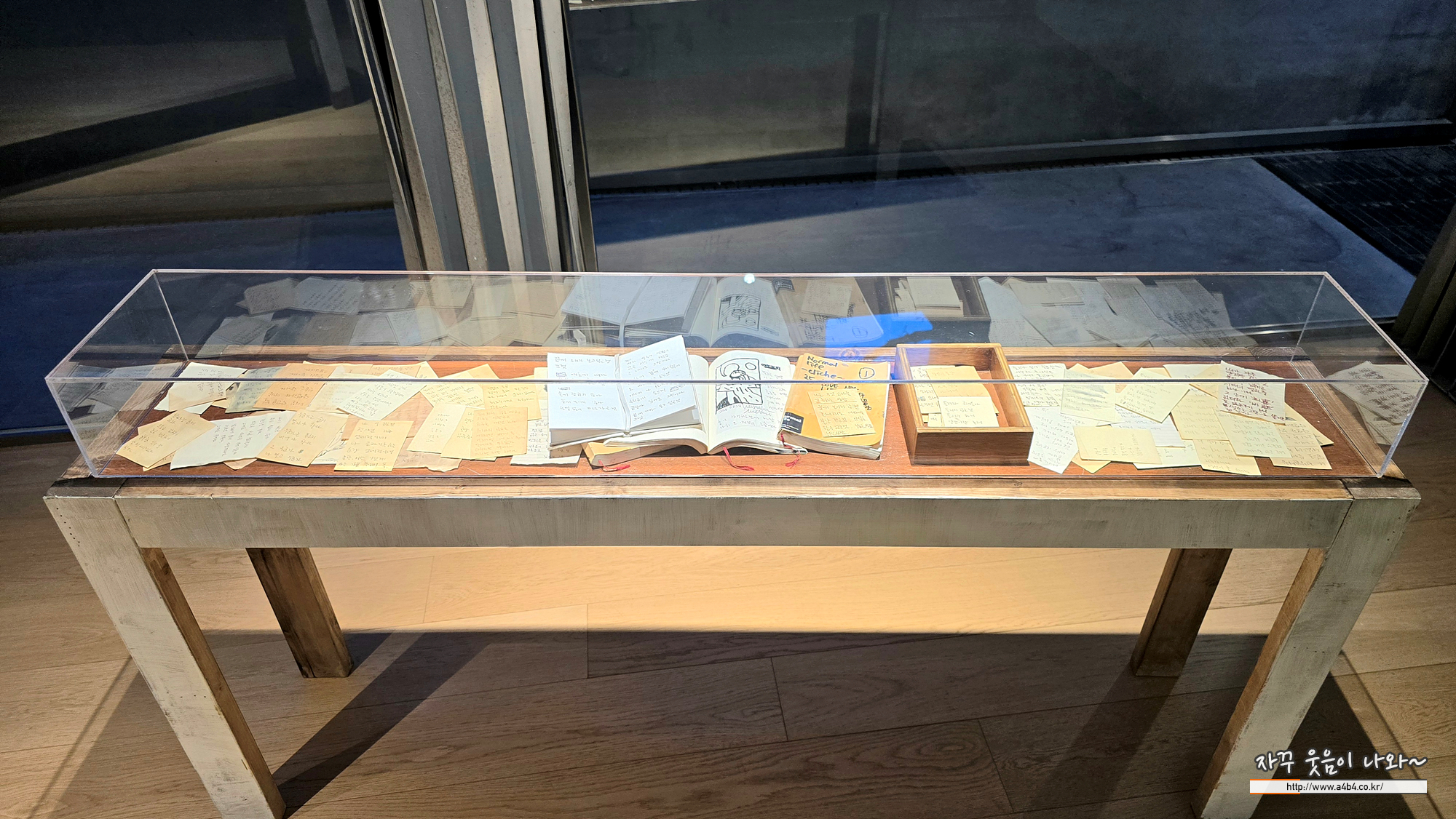에브리데이몬데이 갤러리 1층 전시장에서 마나볼 수 있는 김희수 작가의 메모와 스케치...